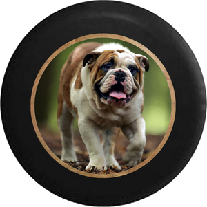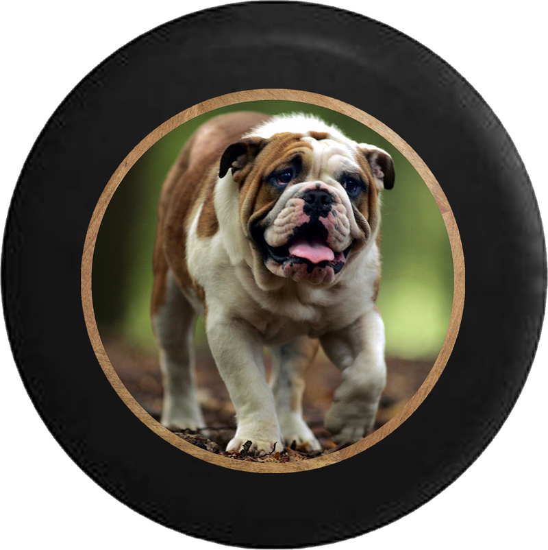 Happy English Bulldog Dog Furbaby K9 Jeep Camper Spare Tire Cover BLACK- - R335