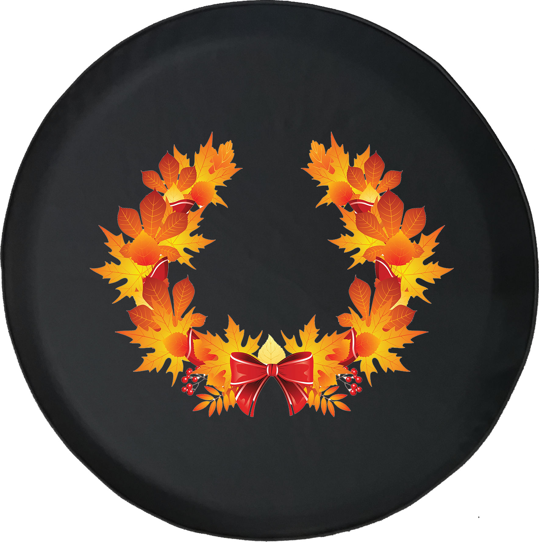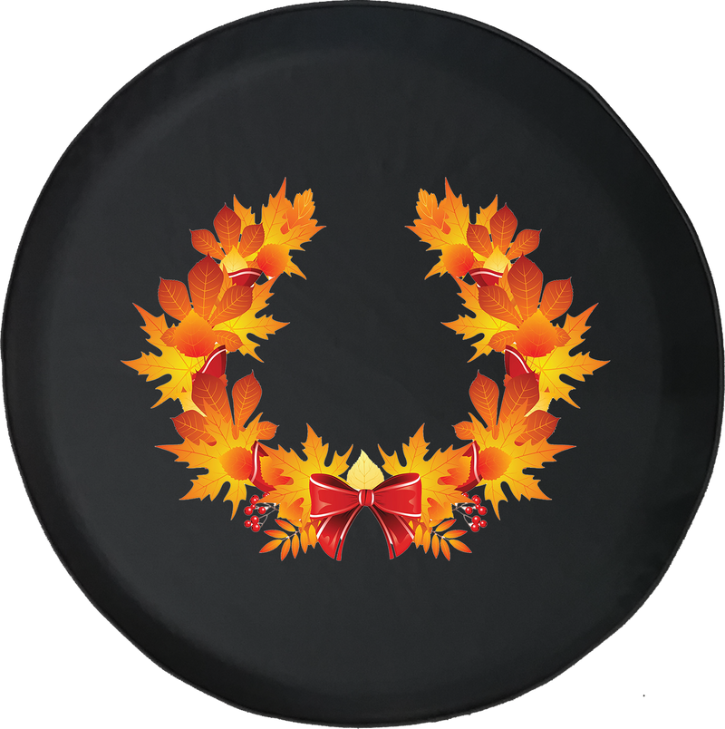 Holiday Wreath Fall Spring Winter Leaves Spirit Festive Red Bow Jeep Camper Spare Tire Cover - MLW114