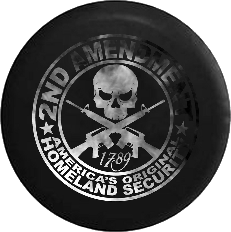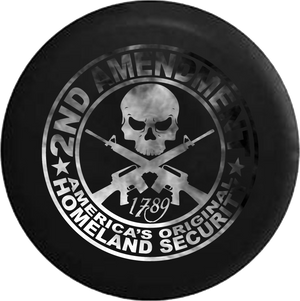 Show off your American pride with this?ÿJeep Wrangler Spare Tire Cover With 2nd Amendment Homeland Security Print.