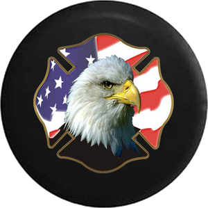 Support your heritage and fire fighters by driving around with this?ÿJeep Wrangler Spare Tire Cover With Bald Eagle Fire Fighter.