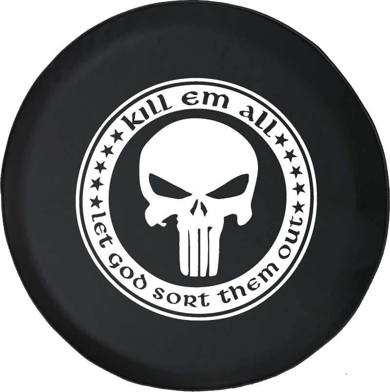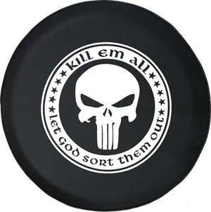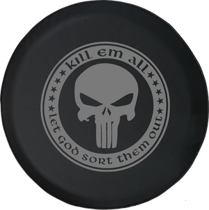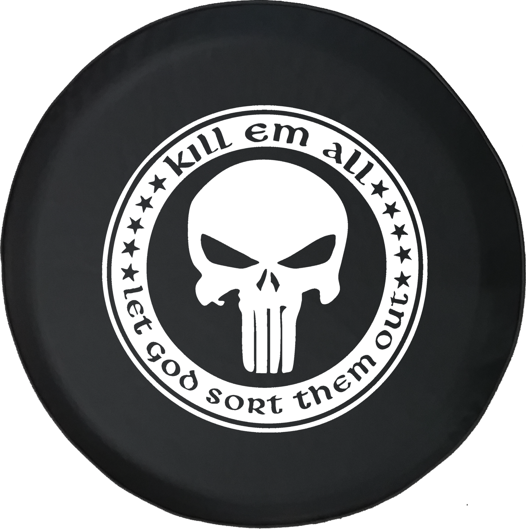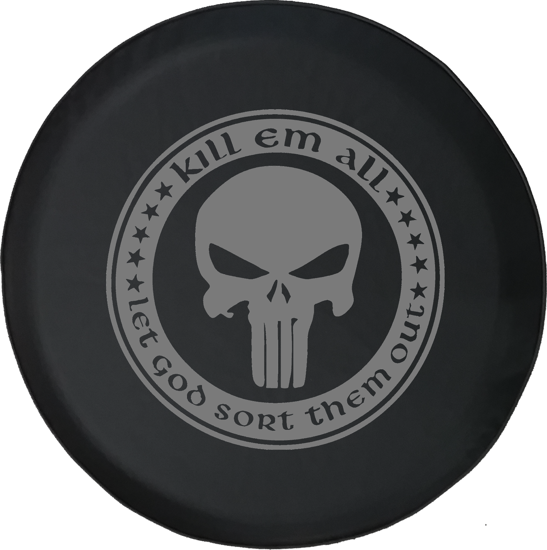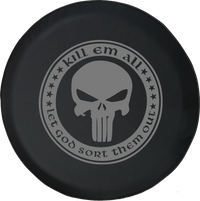 Cruise through the night with confidence with the Jeep Liberty Spare Tire Cover With Kill Em All.?ÿ