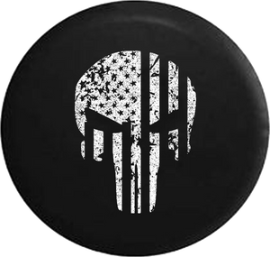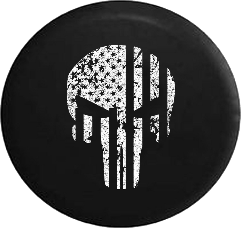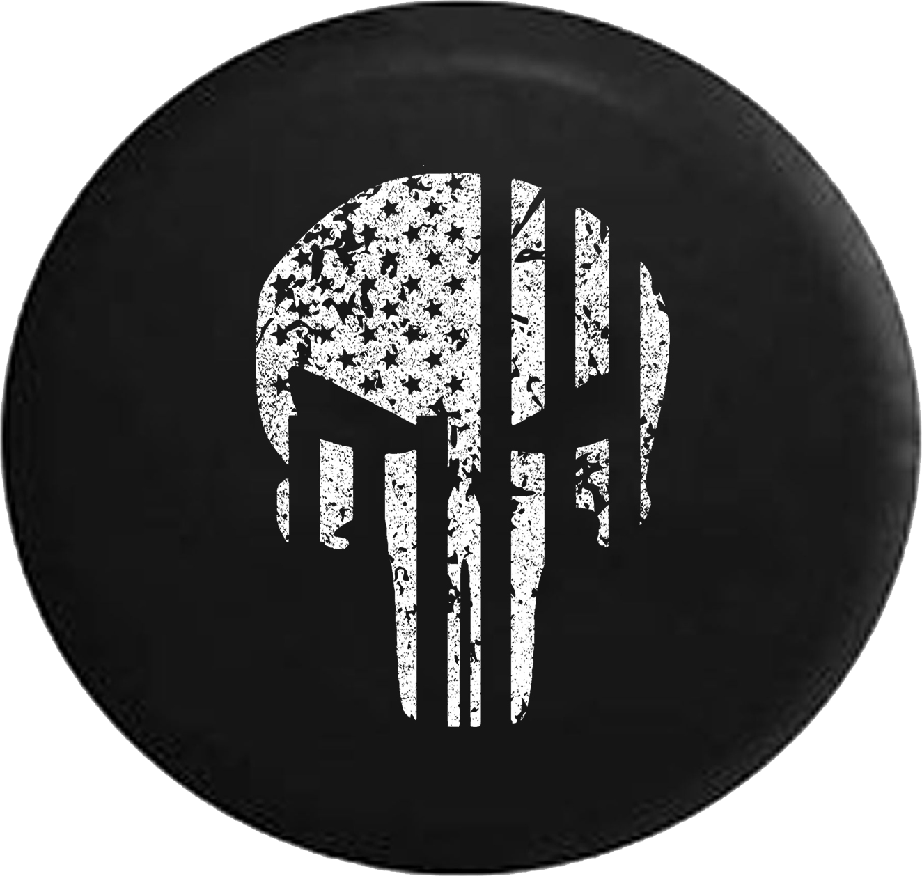 Show your devotion to the United States of America on your spare tire with this?ÿJeep Liberty Tire Cover With Distressed Military Punisher Print. Professionally produced with American pride.