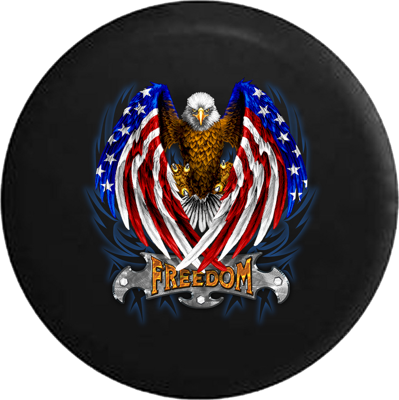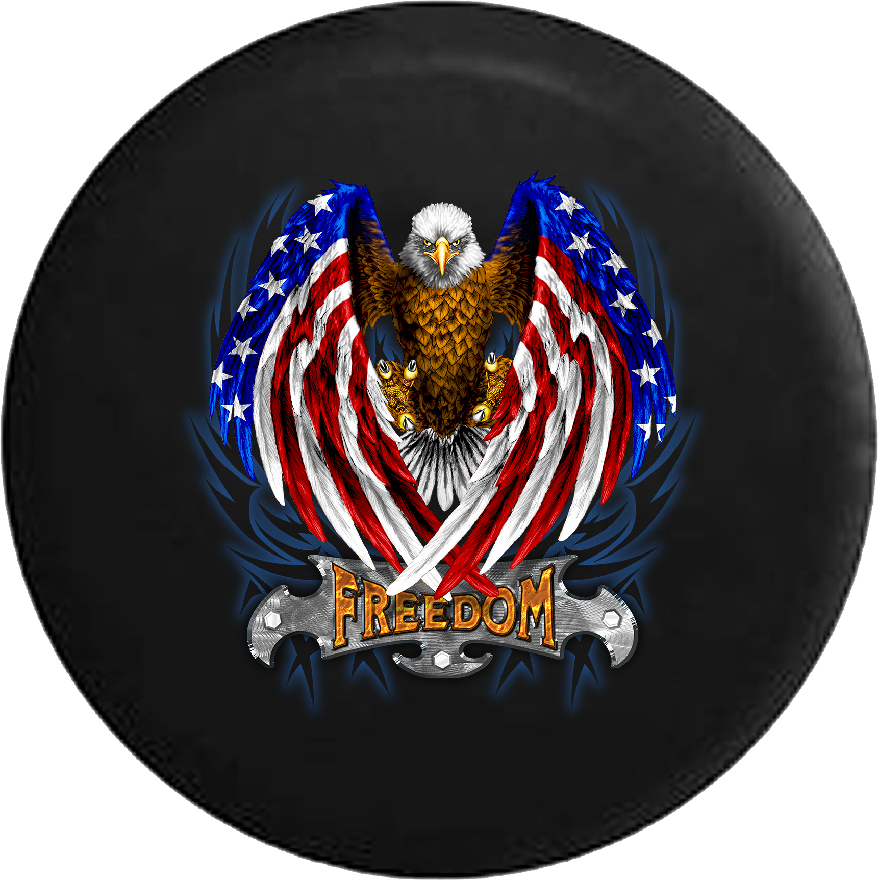 Show your devotion to the United States of America on your spare tire with this?ÿJeep Liberty Tire Cover With Freedom Bald Eagle.