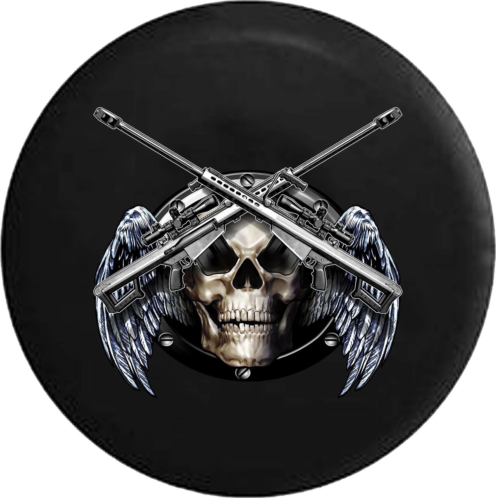 Cruise through the night with confidence with this?ÿJeep Liberty Tire Cover With Skull and Crossed Snipers.