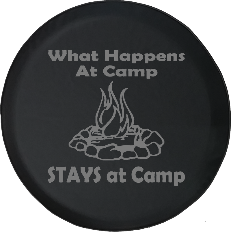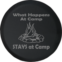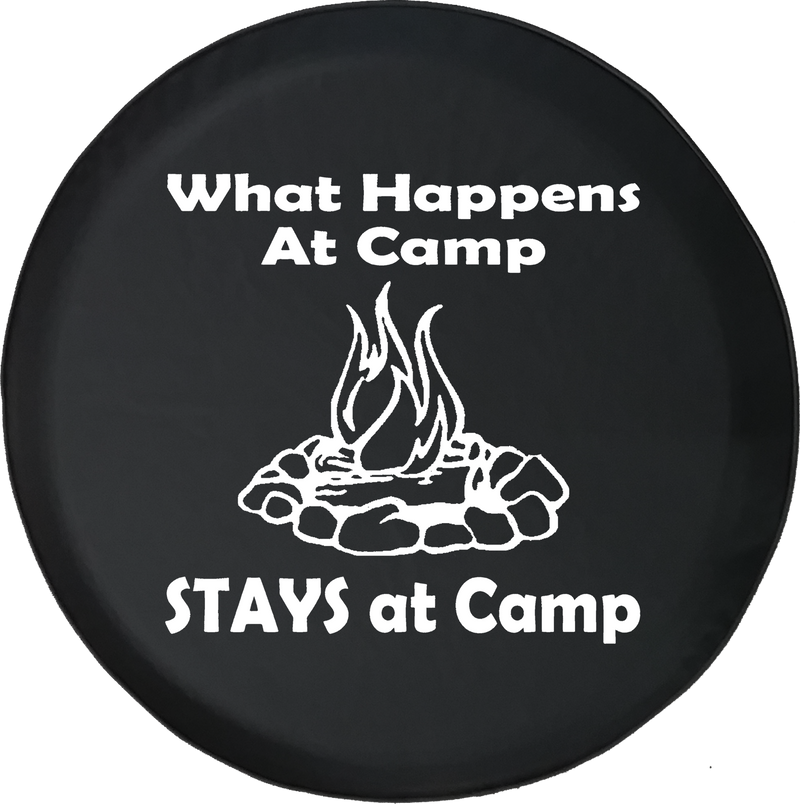 Show everyone on the road how fun camping is with this Jeep Liberty Tire Cover With What Happens at Camp Print. Our tire covers come in different sizes to fit all Jeep?ÿLiberty spare tires such as?ÿ225/75R16, 215/75R16?ÿand a lot more.