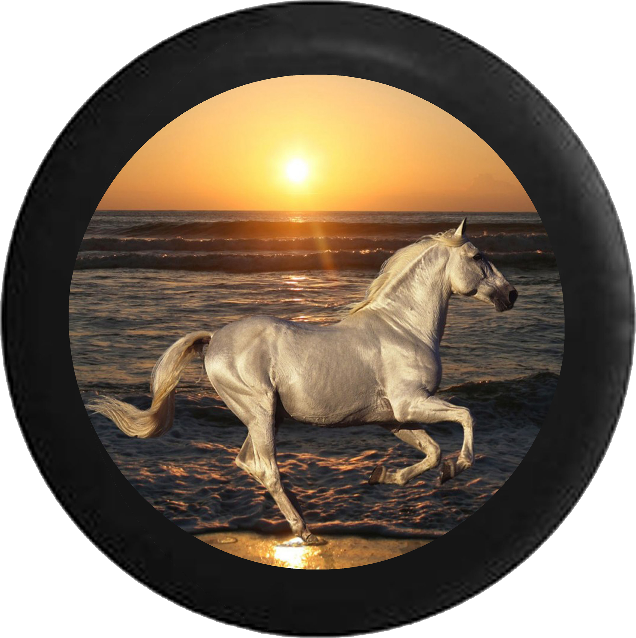 Add a touch of art to your spare tire cover with this Jeep Liberty Tire Cover With White Horse Print. Our tire covers come in different sizes to fit all Jeep?ÿLiberty spare tires such as?ÿ215/75R16, 225/75R16 and a lot more.