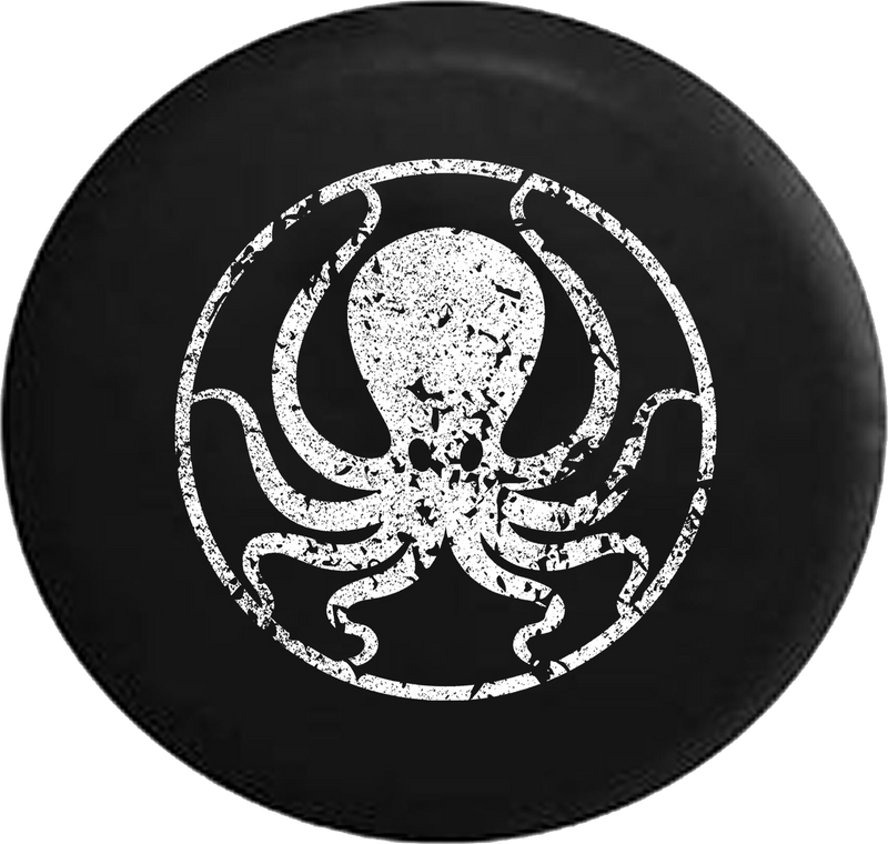 Protect your spare tire from road grime and sun damage with this Jeep?ÿWrangler?ÿSpare Tire Cover With Distressed Octopus Print. Our tire covers come in different sizes to fit all Jeep?ÿWrangler spare tires such as?ÿ215/75R15, 205/75R15 and a lot more.