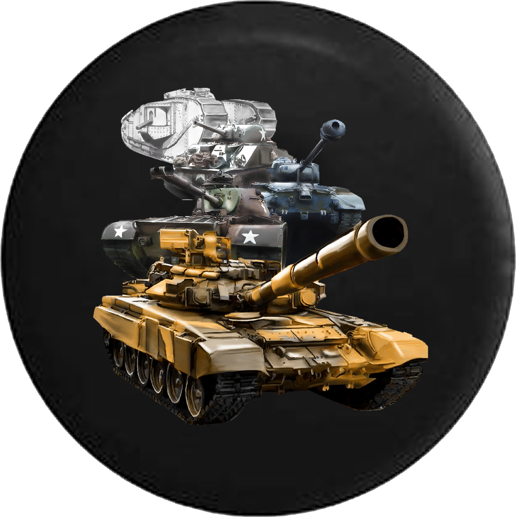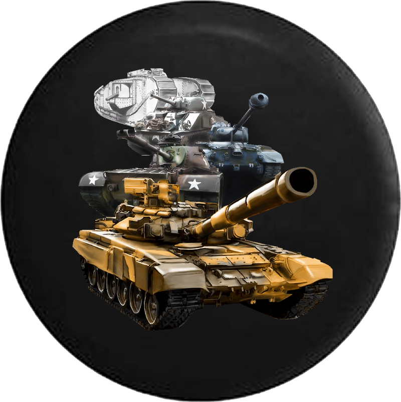 Jeep Wrangler Spare Tire Cover With US Military Tanks (Wrangler JK, TJ, YJ)