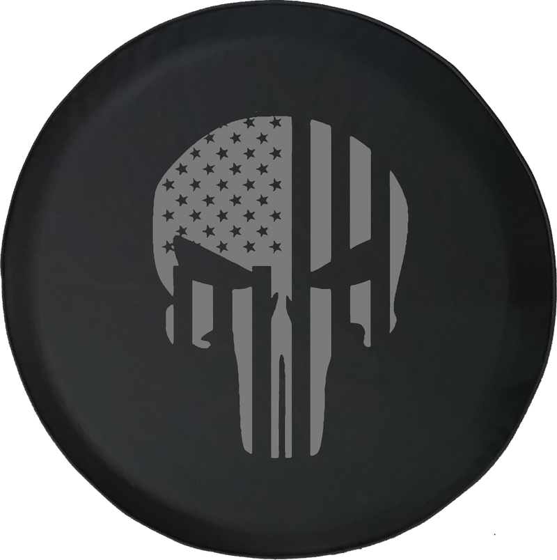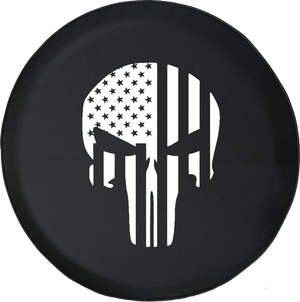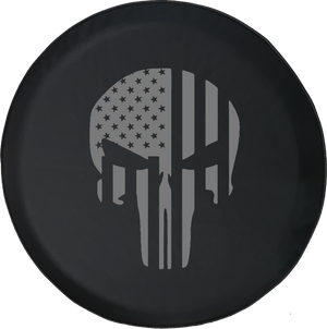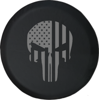 Jeep Wrangler Tire Cover With American Flag Vertical Military Skull (Wrangler JK, TJ, YJ)