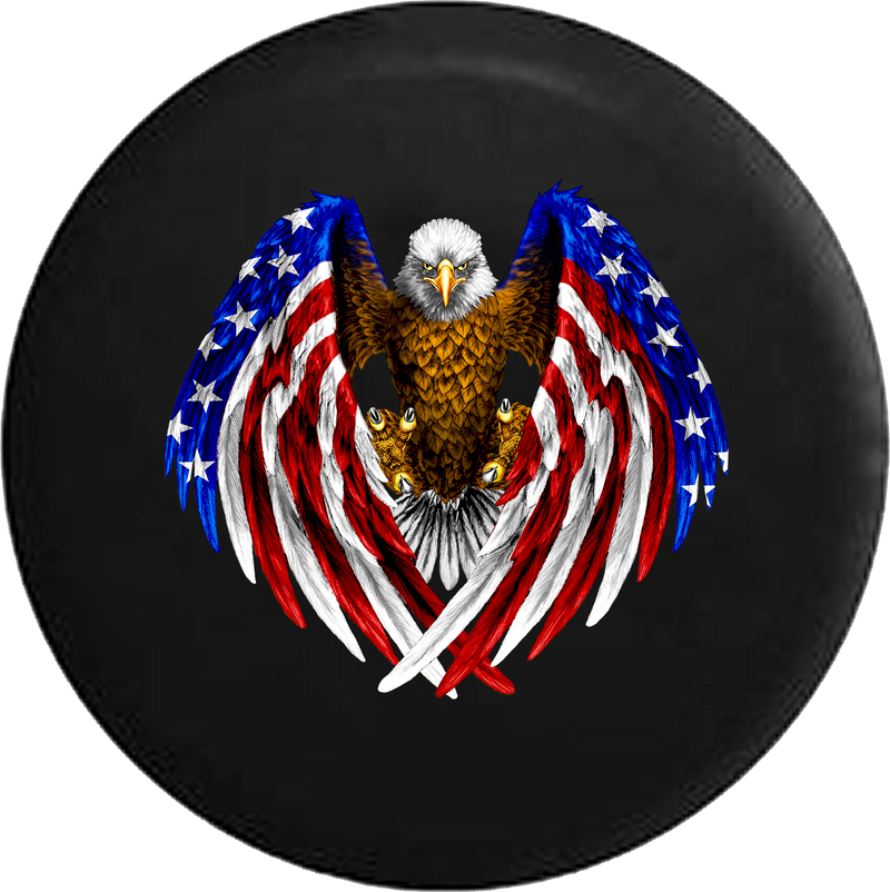 What a great way to show the love you have for your country with this made in U.S.A?ÿJeep Wrangler Tire Cover With Bald Eagle American Wings.