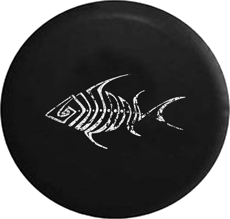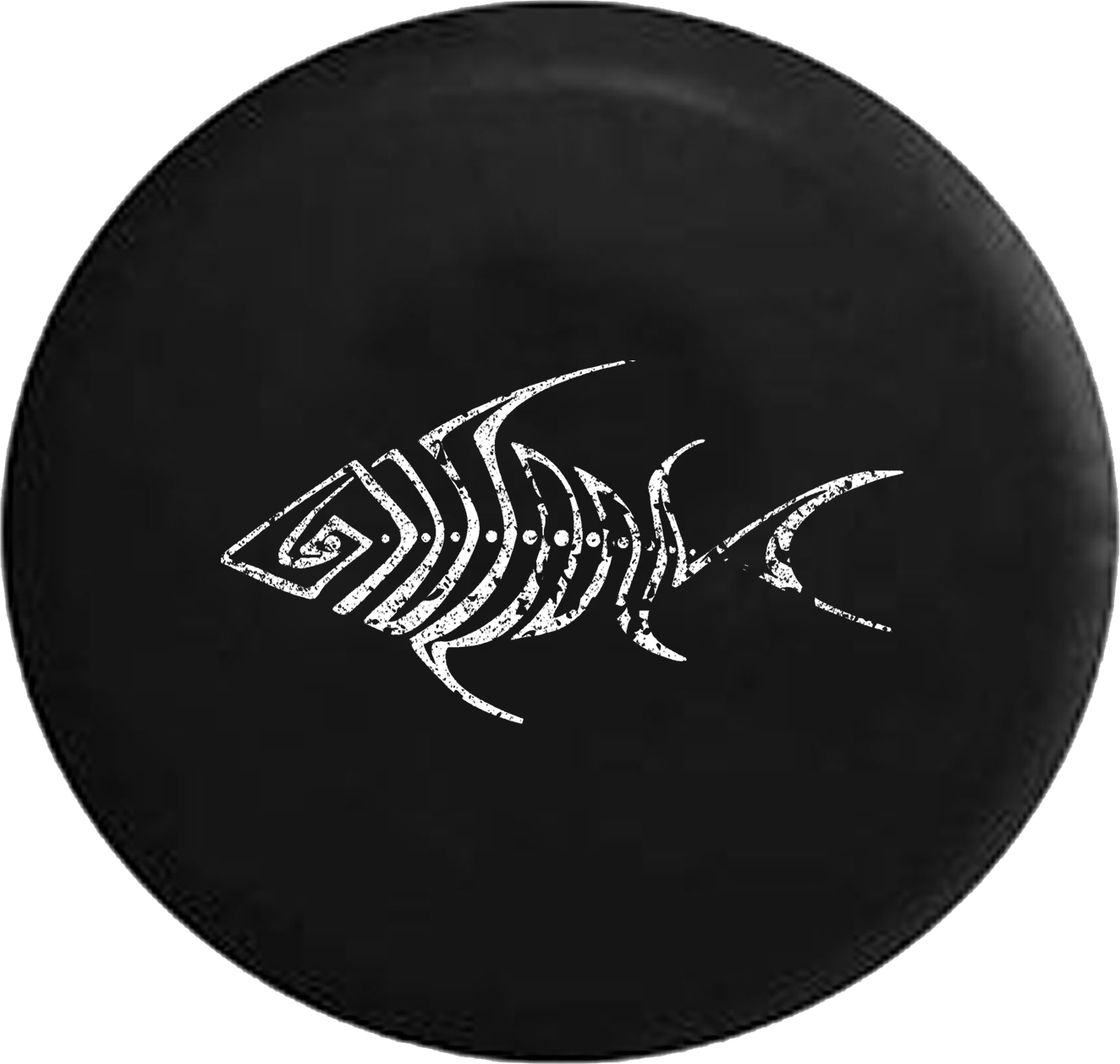 Cruise around with this Jeep?ÿWrangler Tire Cover With Distressed Tribal Bone Fish Print. Our tire covers come in different sizes to fit all Jeep?ÿWrangler?ÿspare tires such as?ÿ225/75R15, 205/75R15 and a lot more.
