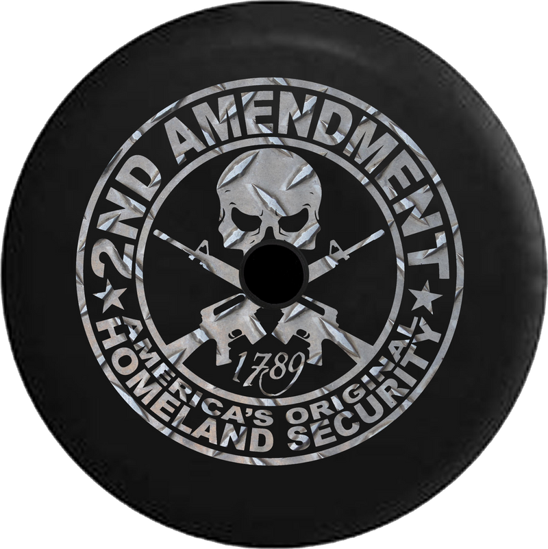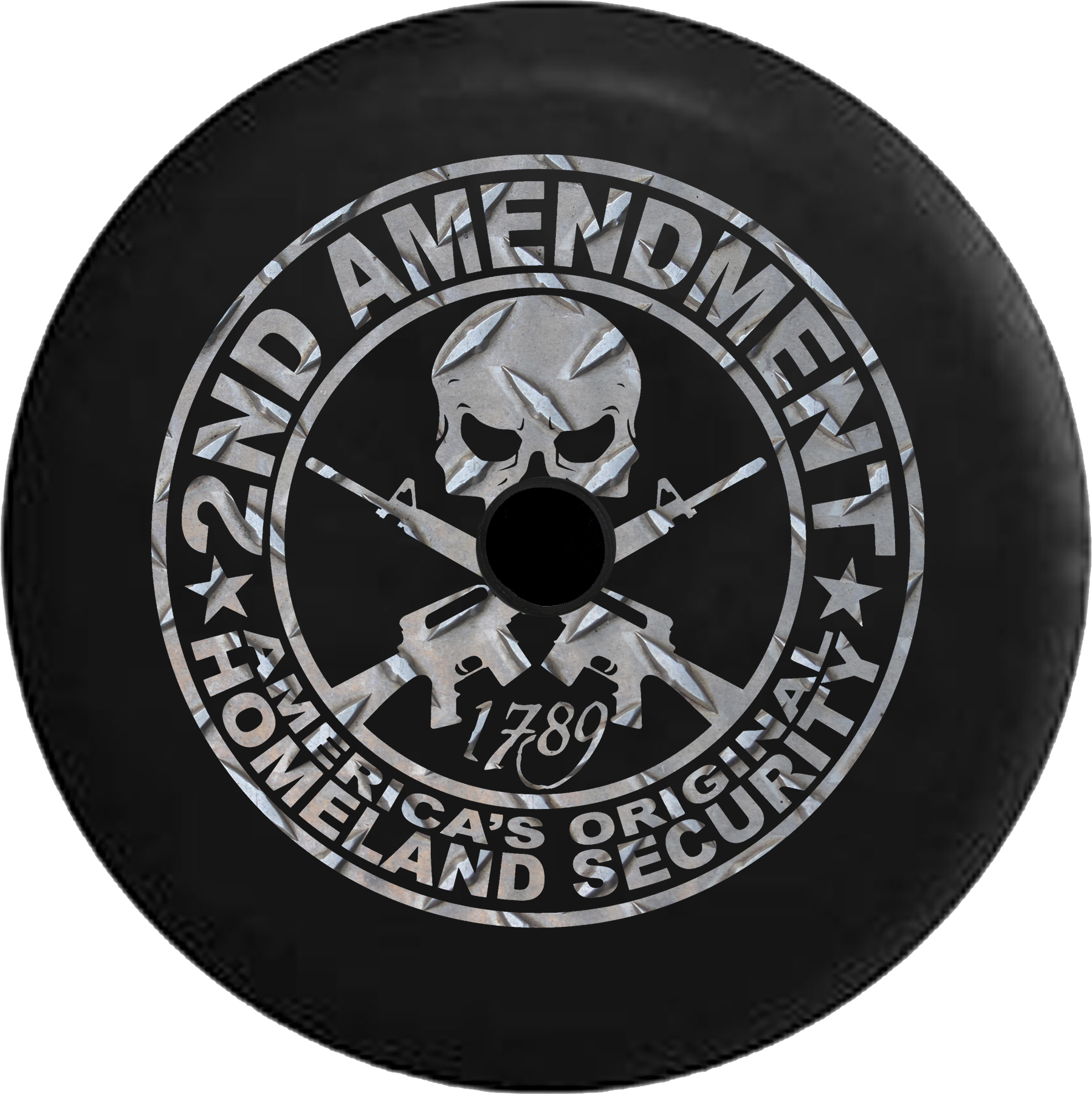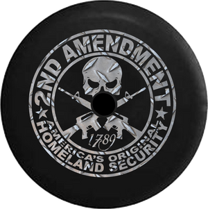 Jeep Wrangler JL Backup Camera 2nd Amendment Homeland Security Skull Aluminum RV Camper Spare Tire Cover-BLACK-