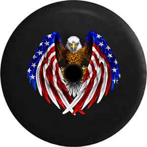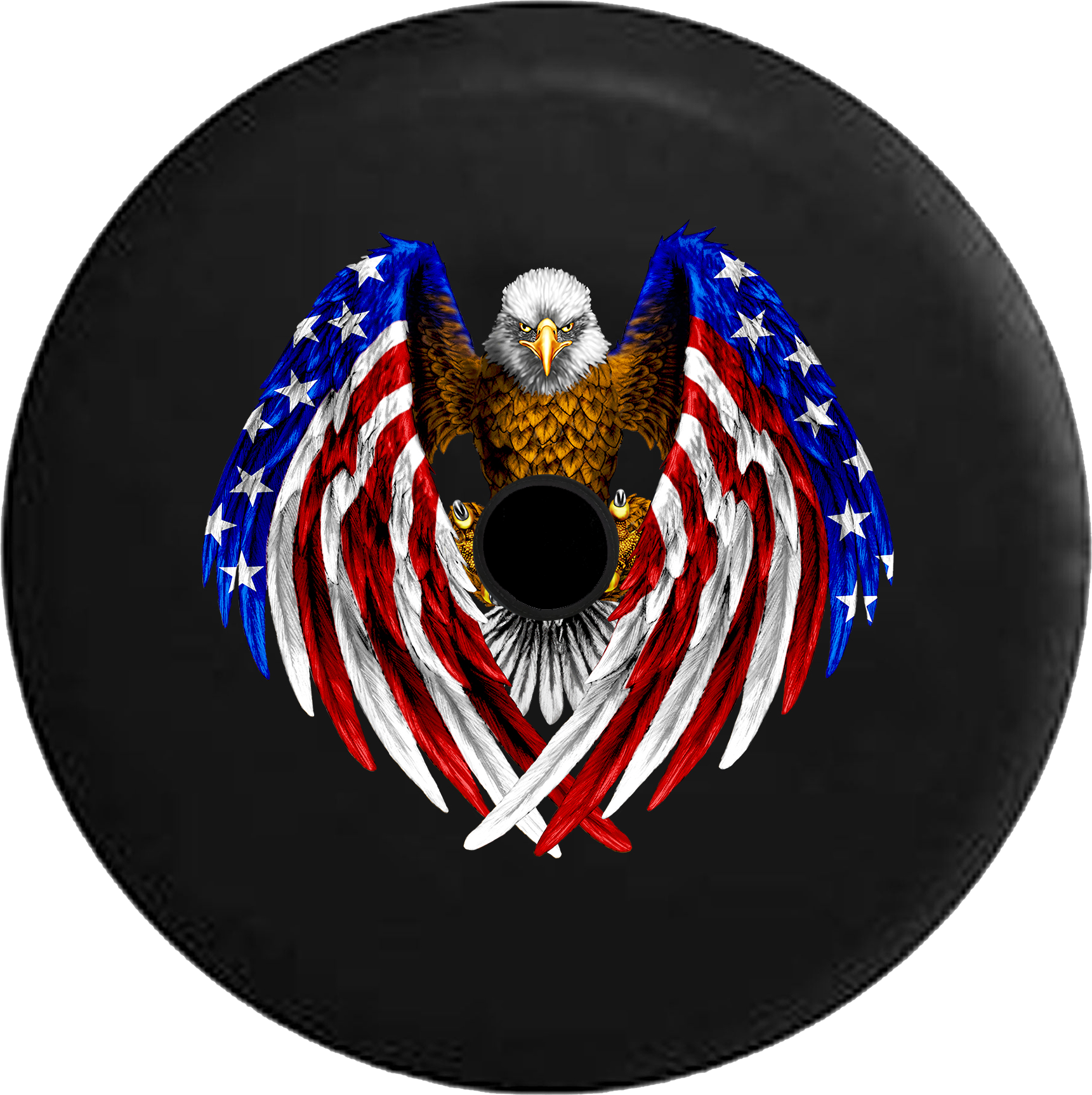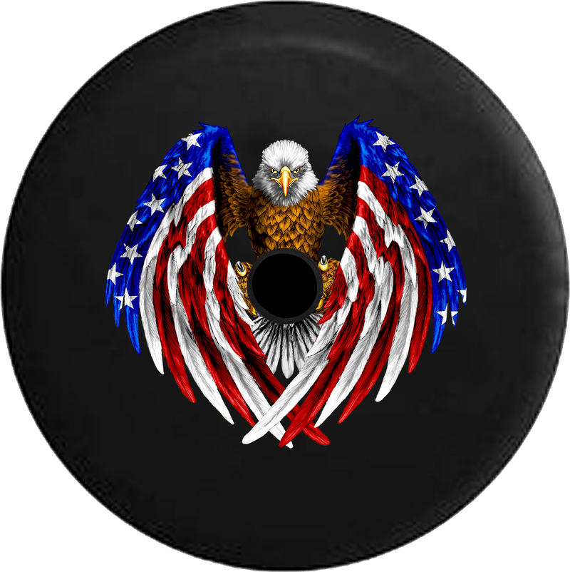 Jeep Wrangler JL Backup Camera American Bald Eagle in Red, White, & Blue Talons Spare Tire Cover-BLACK- SKU- V128