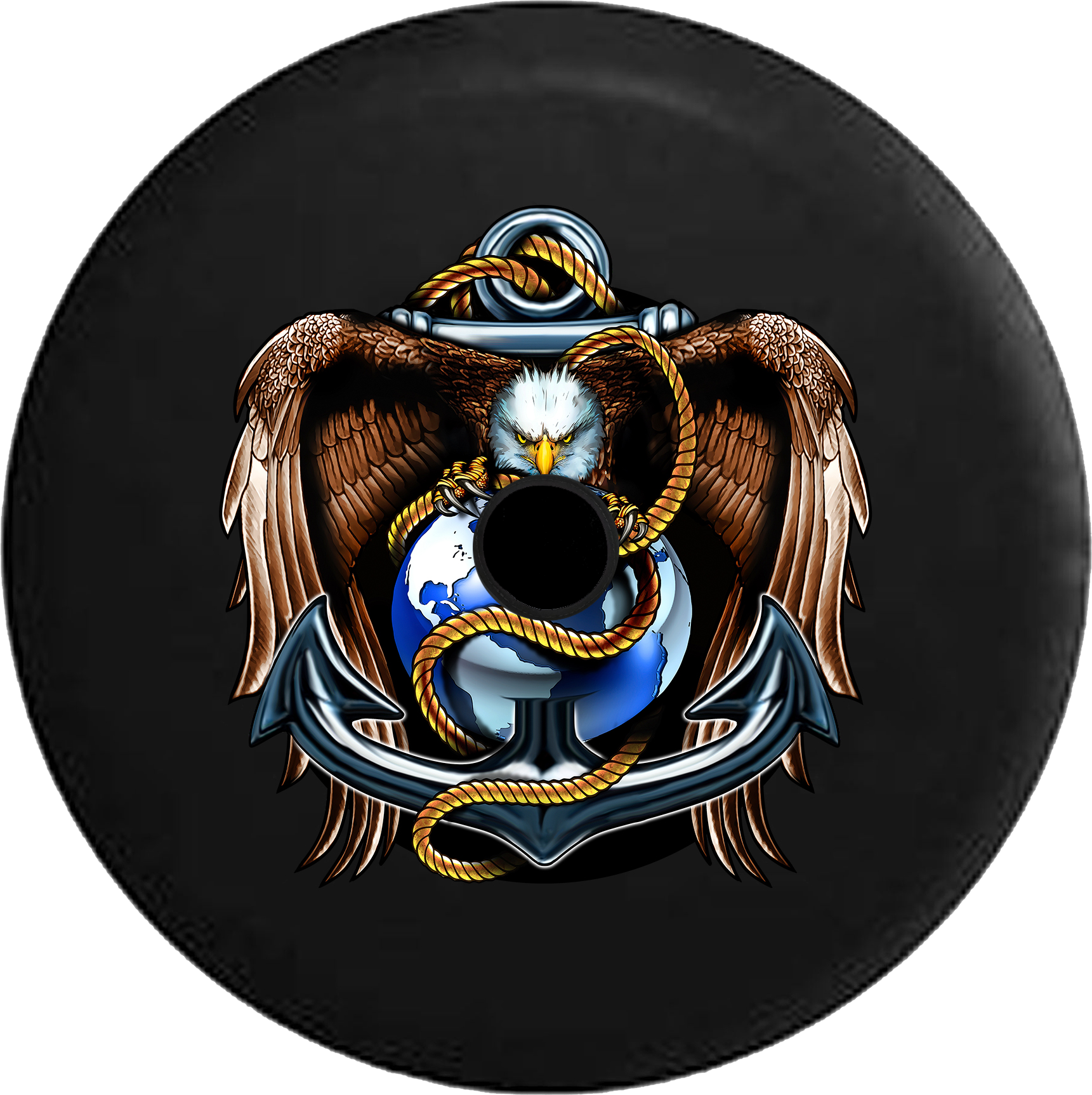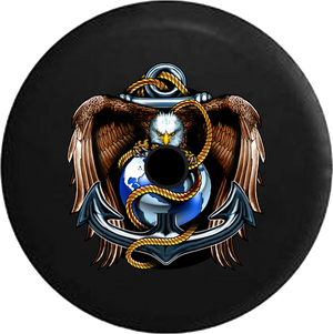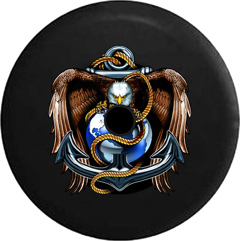 Jeep Wrangler JL Backup Camera American Eagle US Navy Anchor Globe Golden Rope RV Camper Spare Tire Cover-BLACK-
