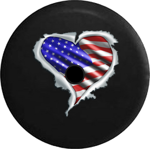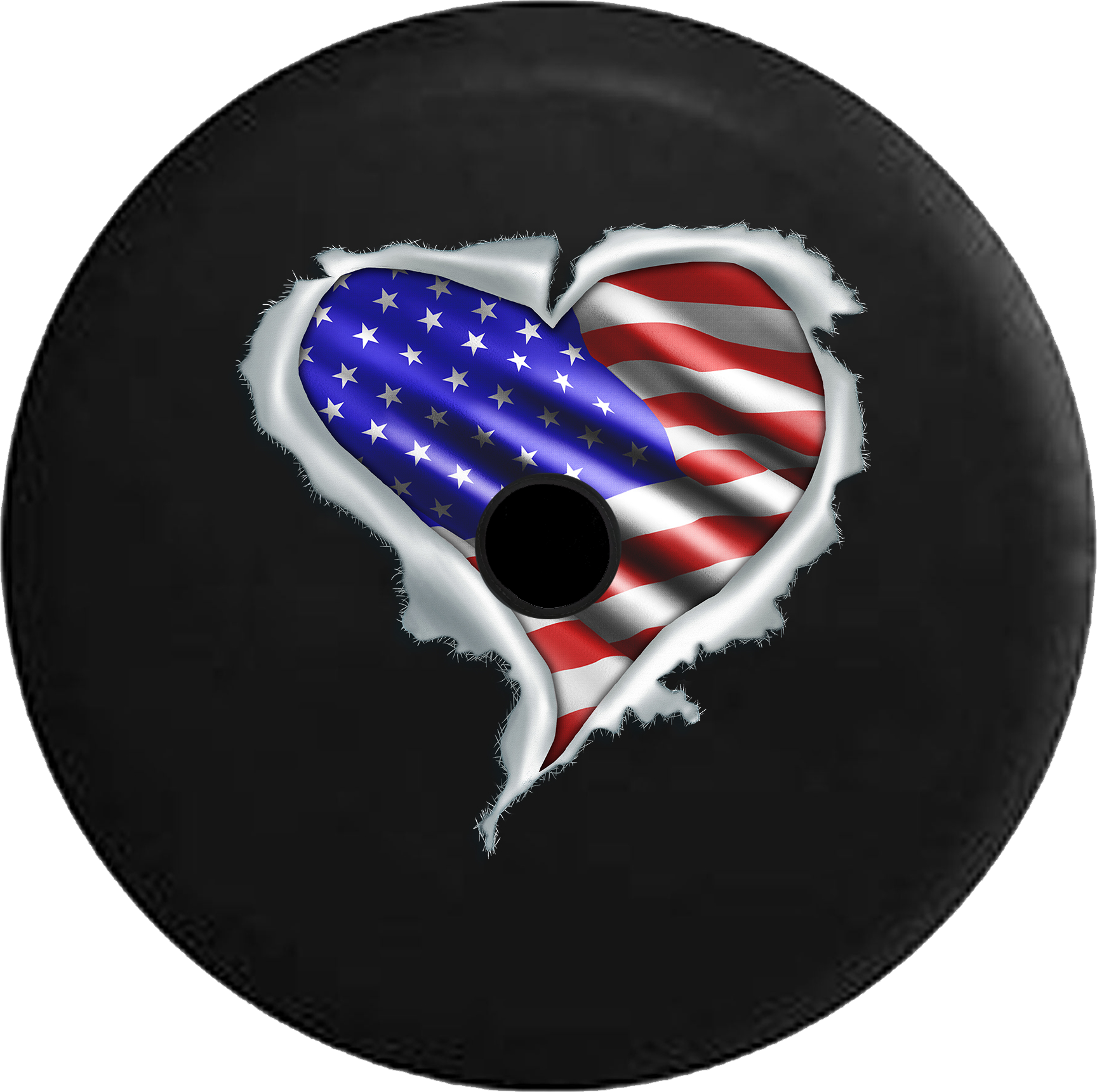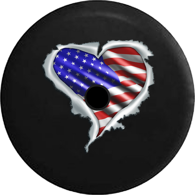 Jeep Wrangler JL Backup Camera American Flag Heart Ripping Thru Spare Tire Cover-BLACK- - V377
