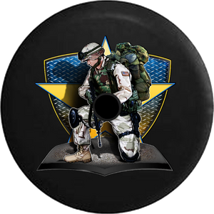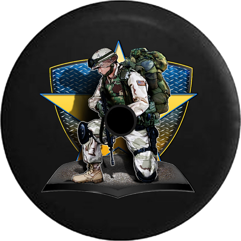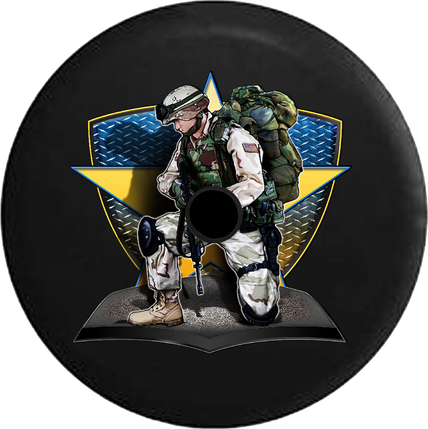 Jeep Wrangler JL Backup Camera American Solider Military on Knee with M16 Rifle Camo RV Camper Spare Tire Cover-BLACK-