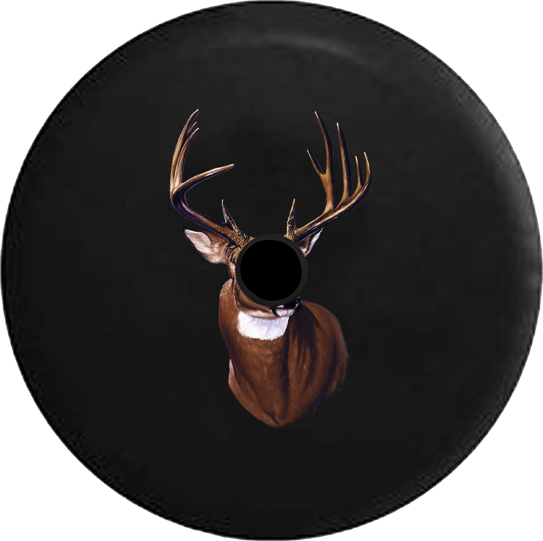 Jeep Wrangler JL Backup Camera Big Buck Hunting White Tail Deer Antlers Rack RV Camper Spare Tire Cover-BLACK-