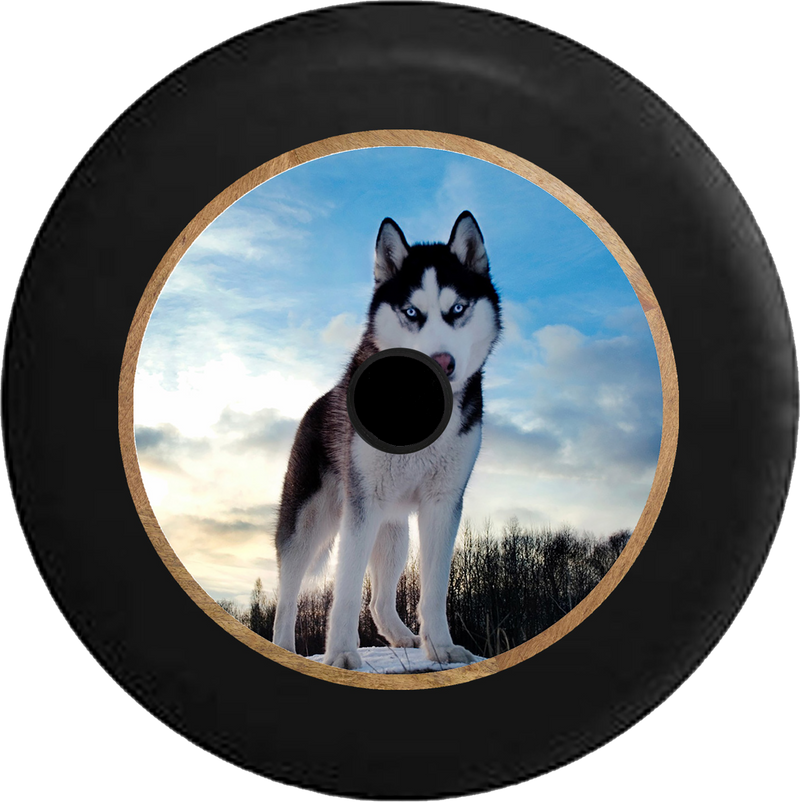 Jeep Wrangler JL Backup Camera Blue Eyed Husky American Dog K9 Wolf Jeep Camper Spare Tire Cover BLACK- - R301