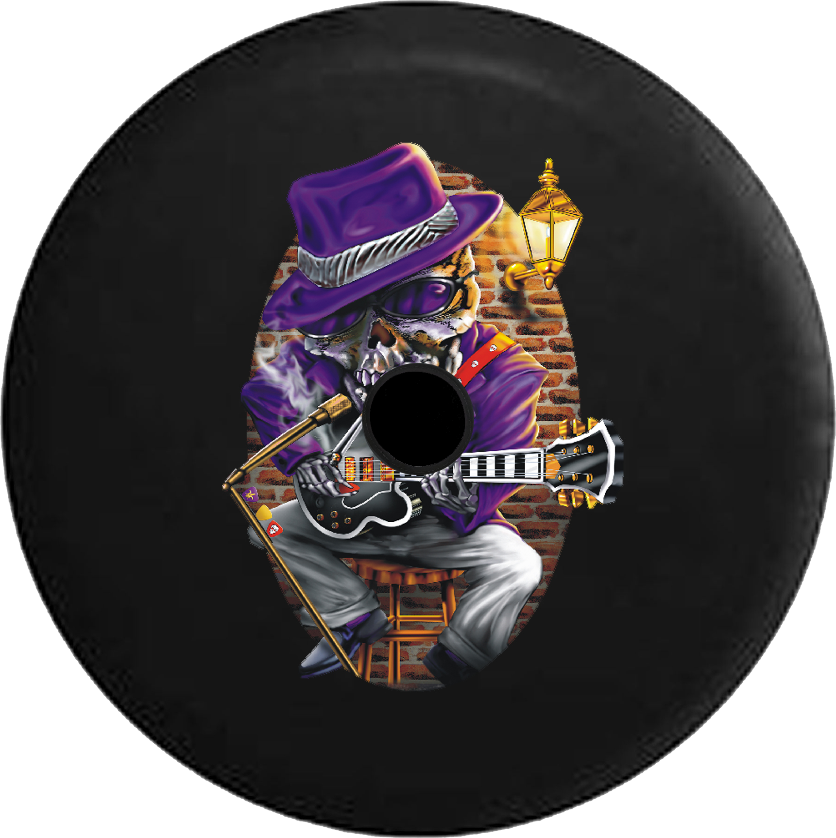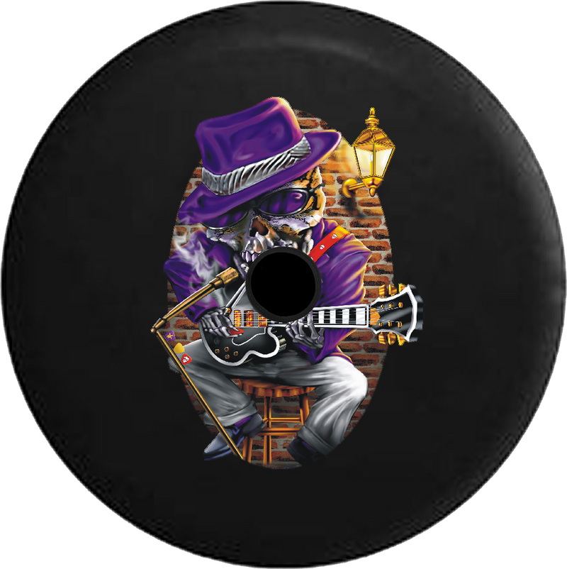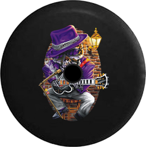 Jeep Wrangler JL Backup Camera Blues Skeleton Johnny Bones Smokey Club Jam Session RV Camper Spare Tire Cover-BLACK-