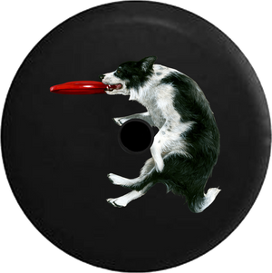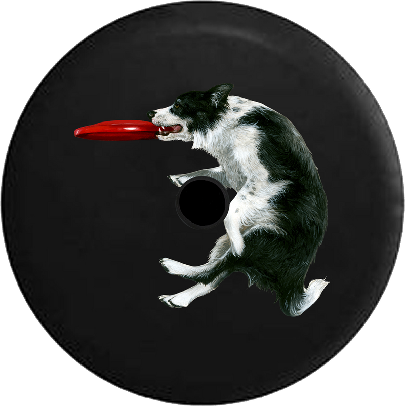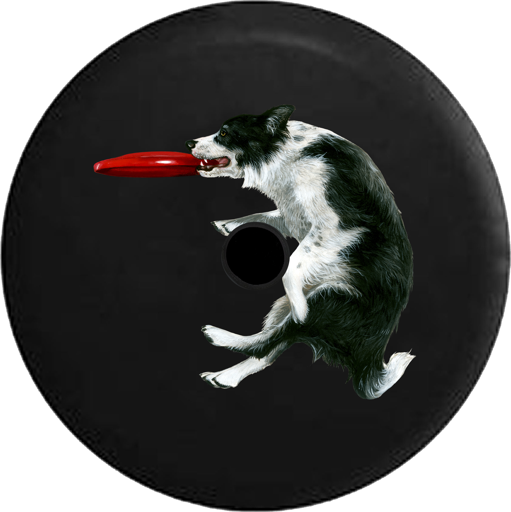 Jeep Wrangler JL Backup Camera Border Collie Frisbee Dog Canine Disc RV Camper Spare Tire Cover-BLACK-