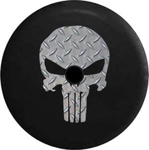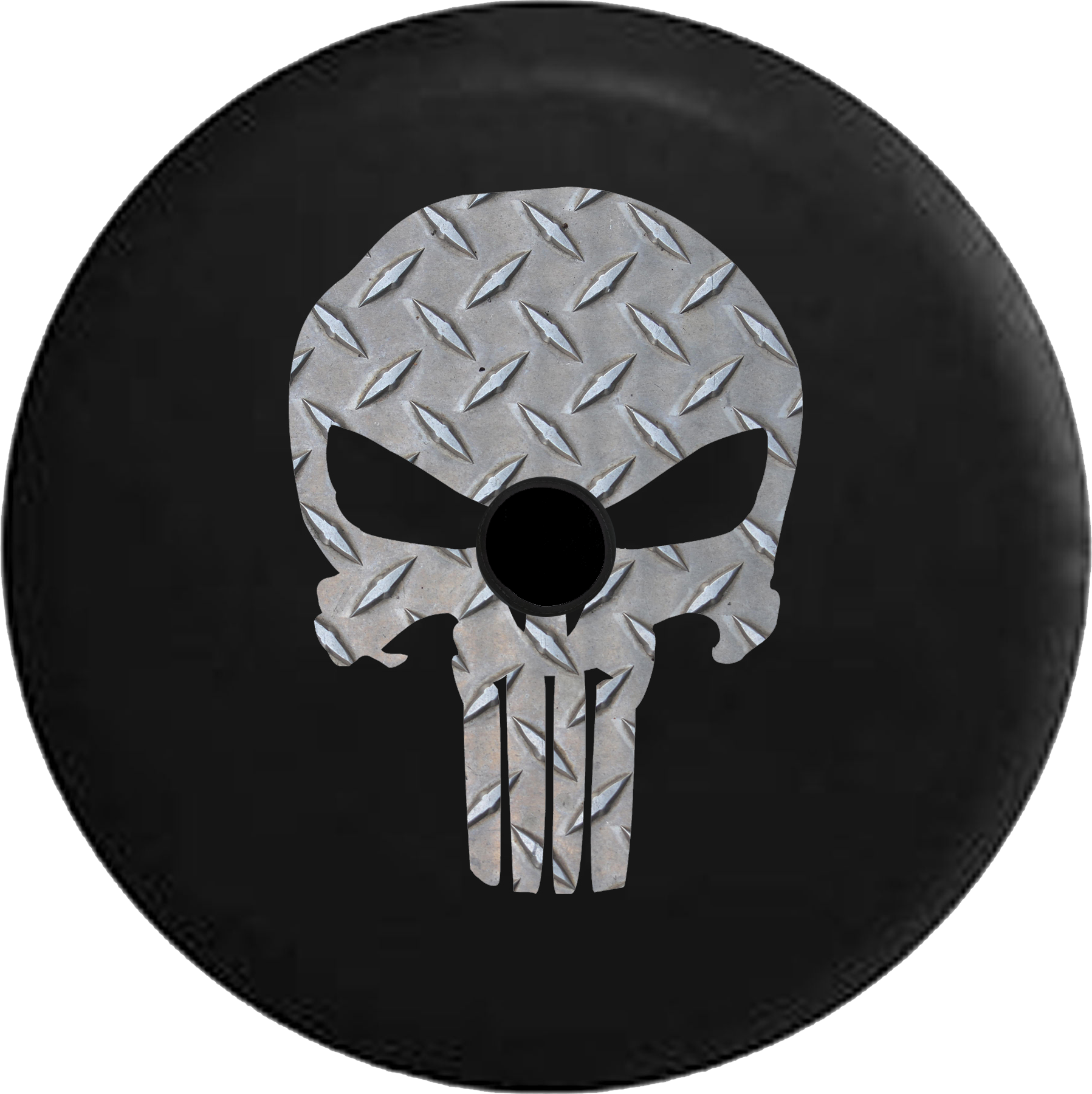 Jeep Wrangler JL Backup Camera Diamond Plate American Patriot Skull RV Camper Spare Tire Cover-BLACK-