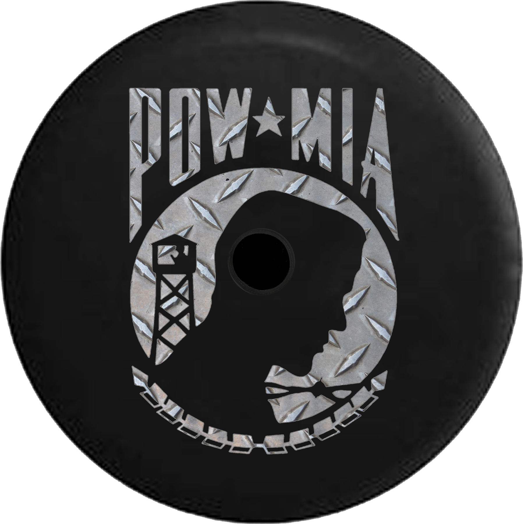 Jeep Wrangler JL Backup Camera Brushed Aluminum POW MIA Veteran Military RV Camper Spare Tire Cover-BLACK-
