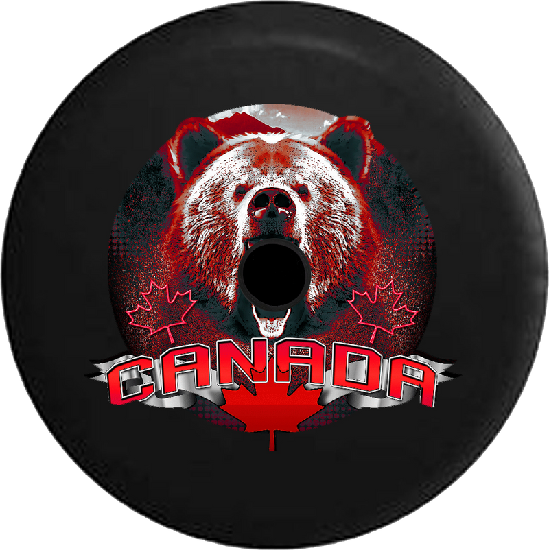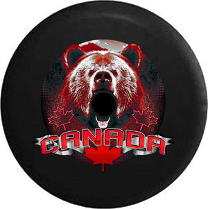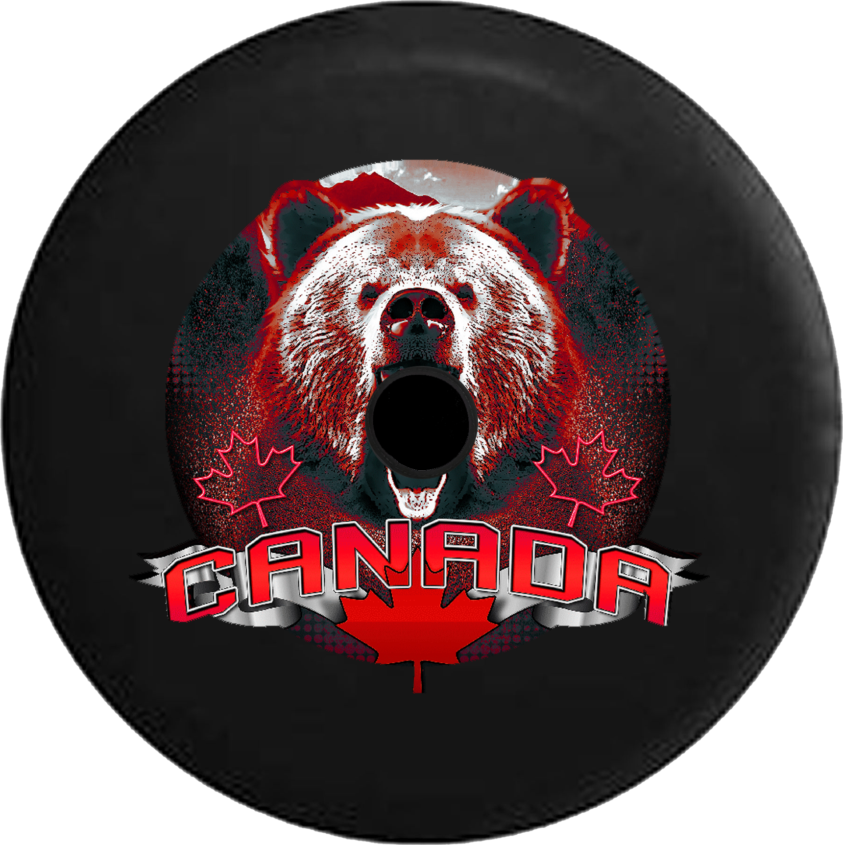 Jeep Wrangler JL Backup Camera Canada Canadian Brown Bear in the Mountains RV Camper Spare Tire Cover-BLACK-