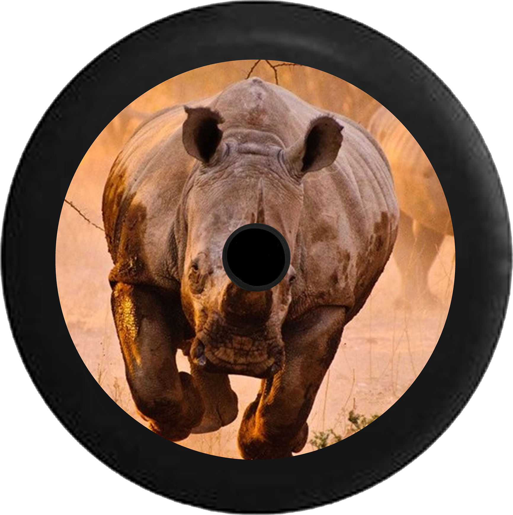 Jeep Wrangler JL Backup Camera Charging African Grey and Black Rhino Jeep Spare Tire Cover BLACK- - R130