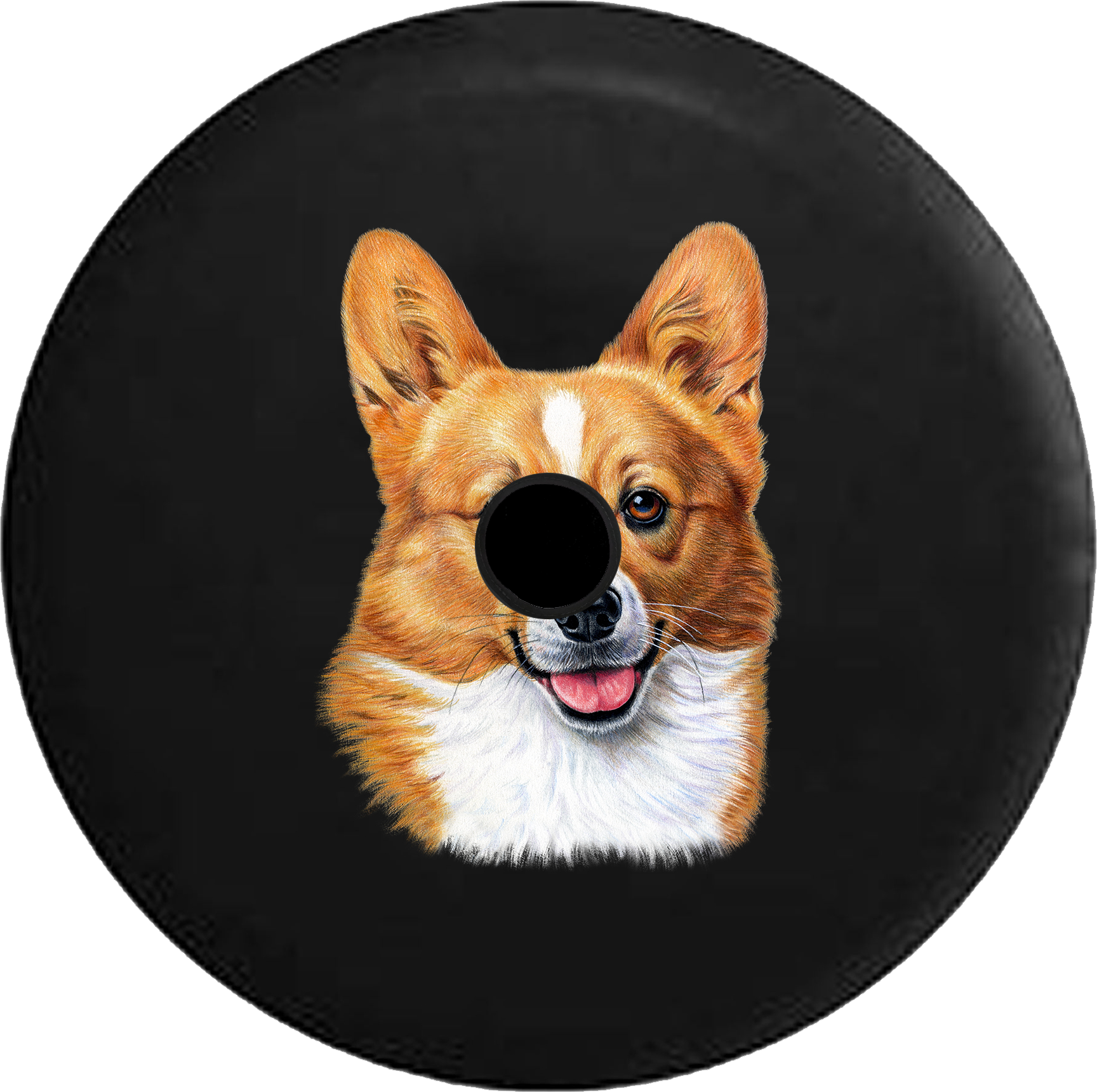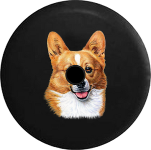 Jeep Wrangler JL Backup Camera Corgi Dog Smiling RV Camper Spare Tire Cover-BLACK-