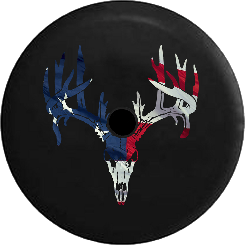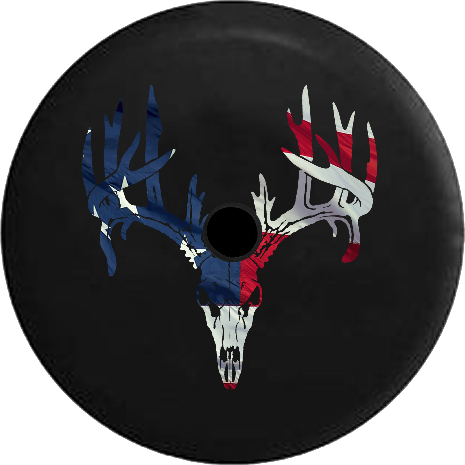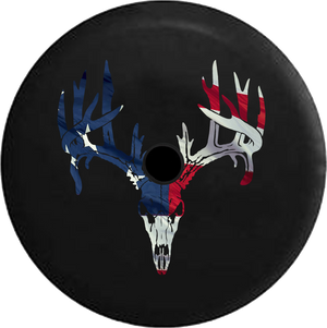 Jeep Wrangler JL Backup Camera Deer Antlers Skull Hunting Dark Ghost Skulls RV Camper Spare Tire Cover-BLACK-