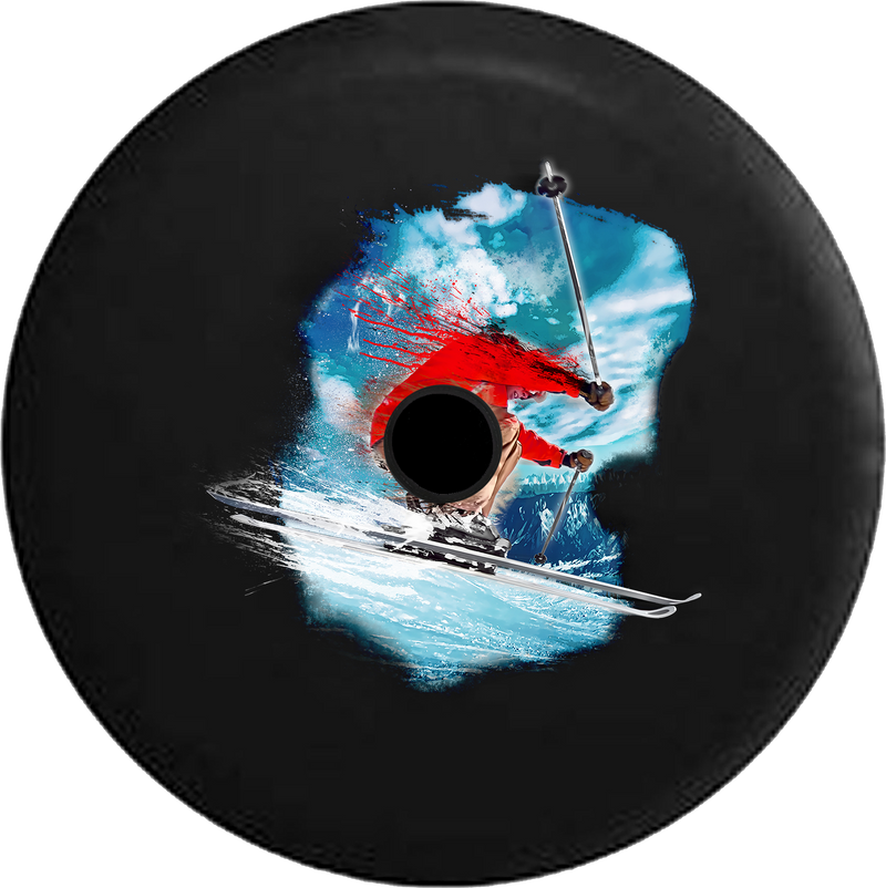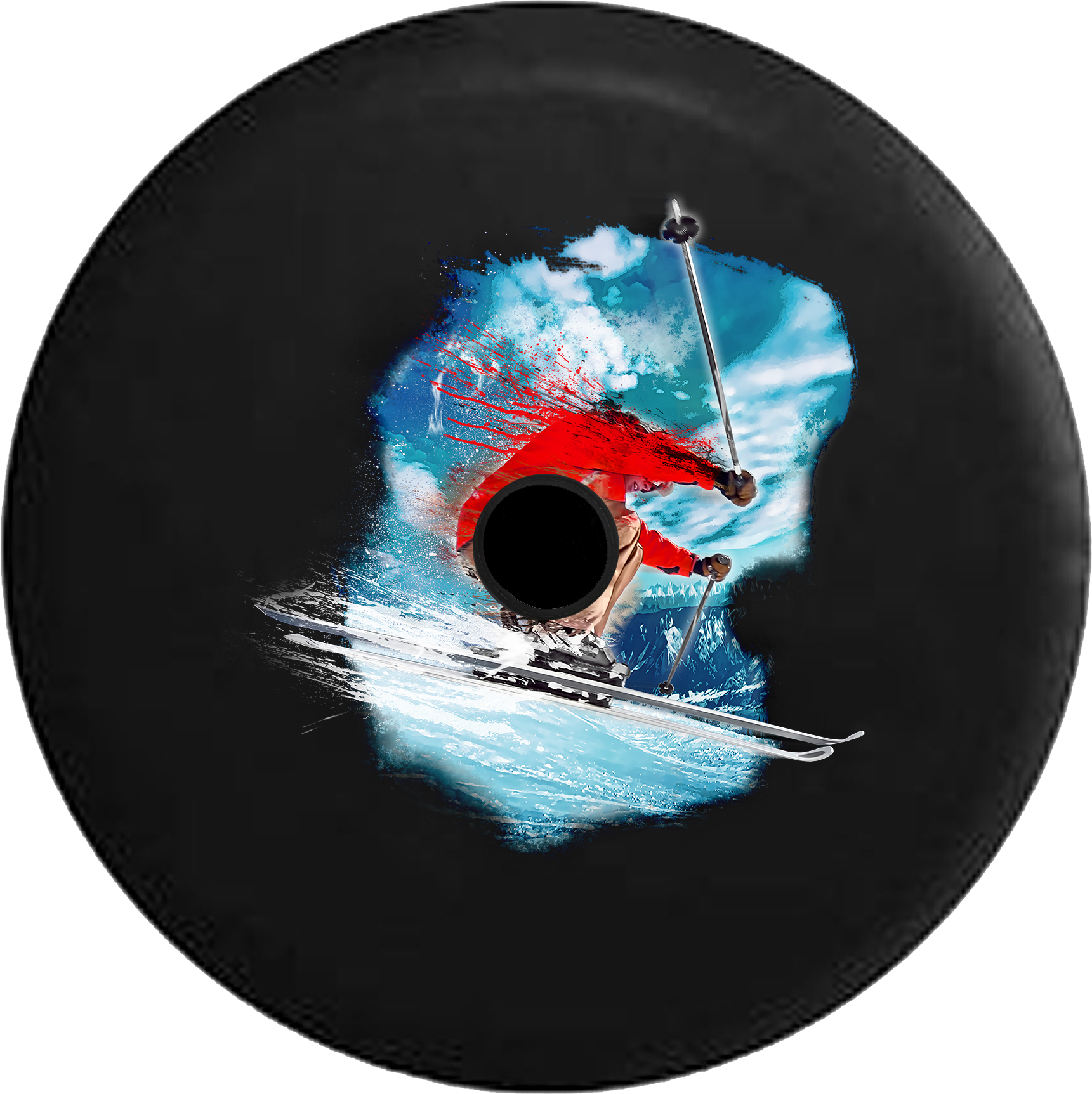 Jeep Wrangler JL Backup Camera Downhill Skiing Ski Trick Jumping RV Camper Spare Tire Cover-BLACK-