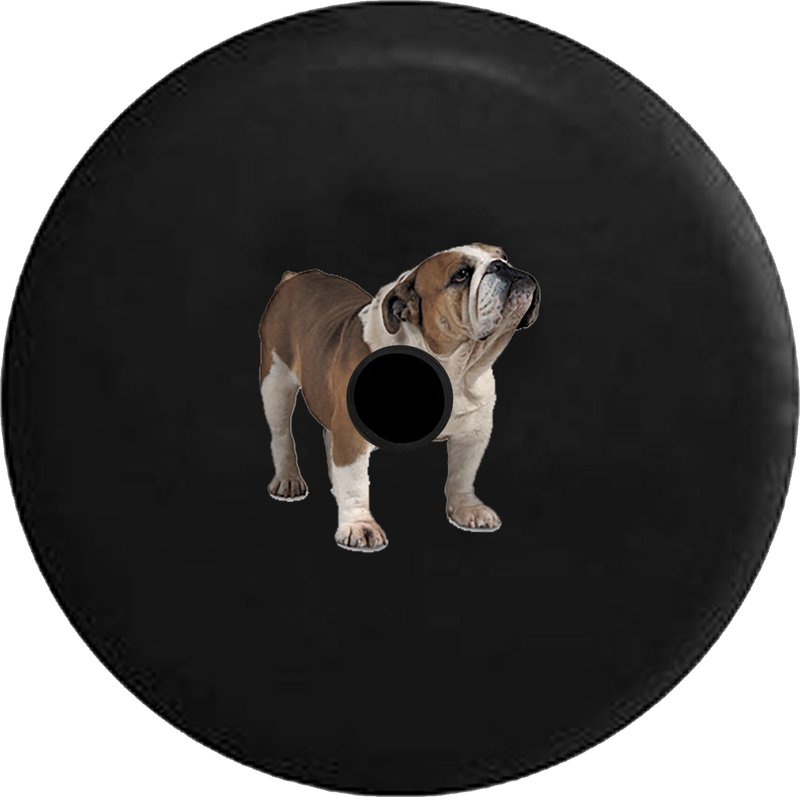 Jeep Wrangler JL Backup Camera English Bulldog Bull Dog Standing RV Camper Spare Tire Cover-BLACK-