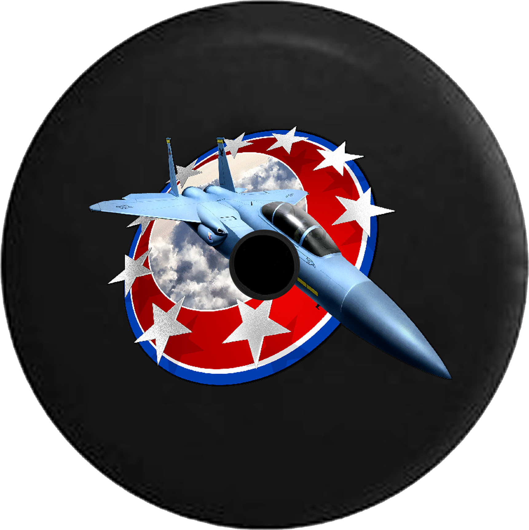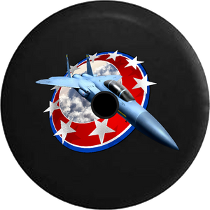 Jeep Wrangler JL Backup Camera Fighter Jet Through Red White and Blue America Shield RV Camper Spare Tire Cover-BLACK-