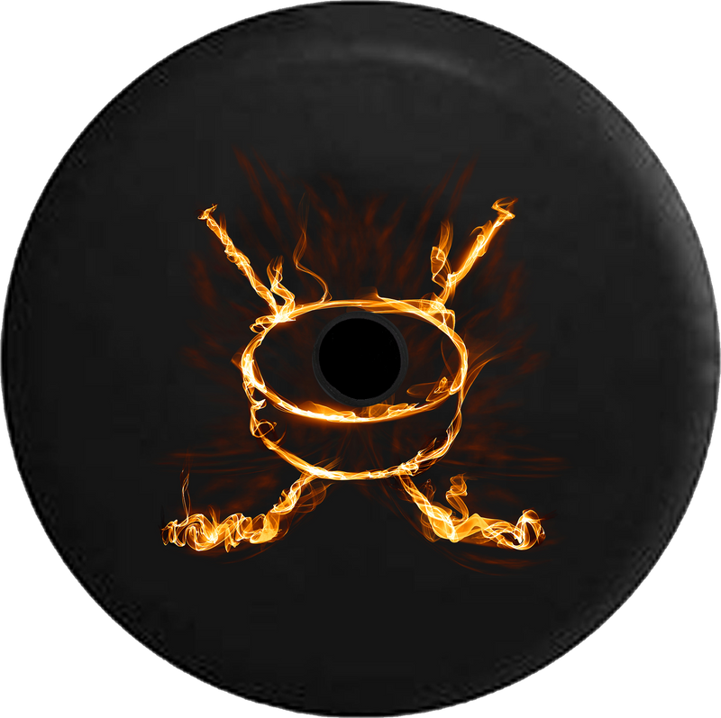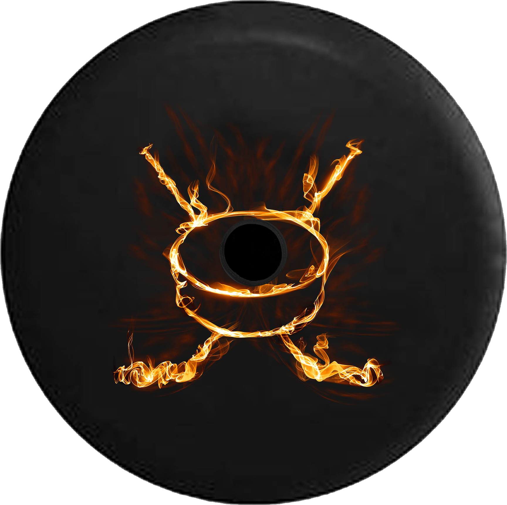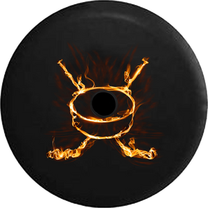 Jeep Wrangler JL Backup Camera Flaming Realistic Fire Hockey Stick & Puck RV Camper Spare Tire Cover-BLACK-