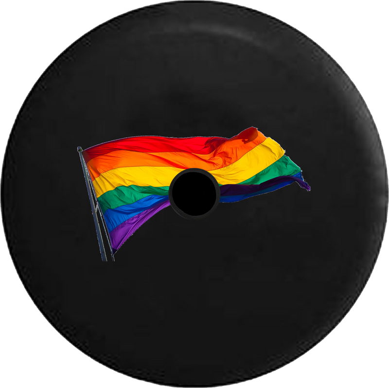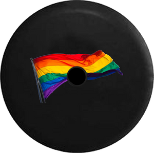 Jeep Wrangler JL Backup Camera Gay Pride LGBT Waving Flag RV Camper Spare Tire Cover-BLACK-