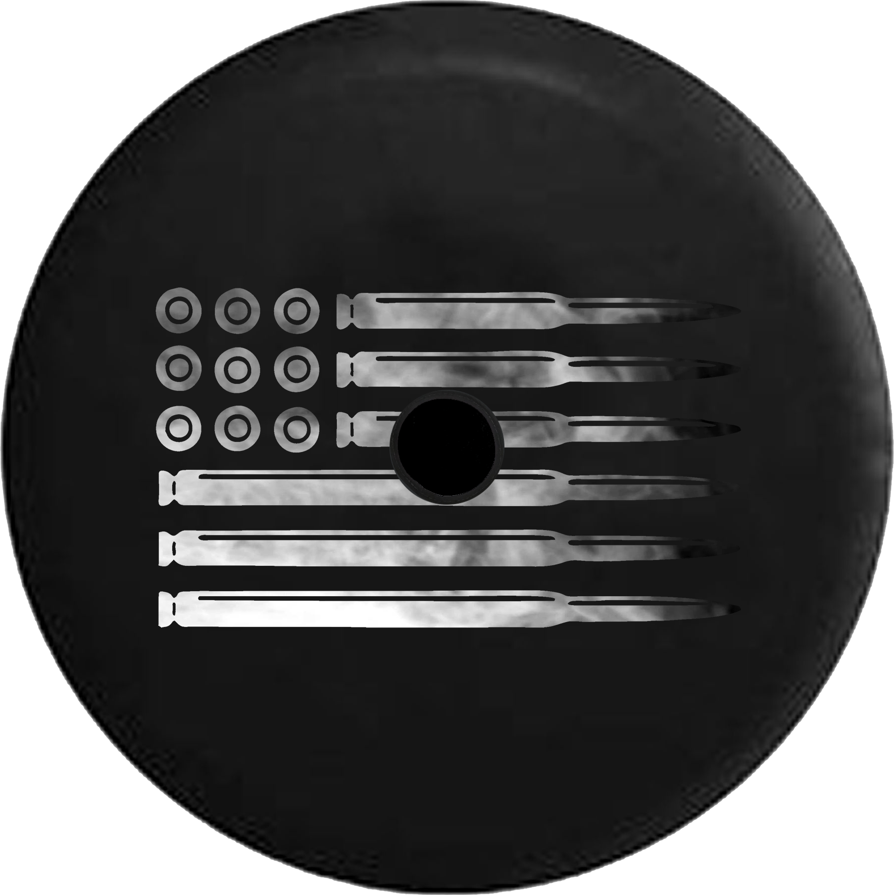 Jeep Wrangler JL Backup Camera Rifle Pistol Bullets Rounds American Flag 2A Gun Smoke Spare Tire Cover-BLACK-