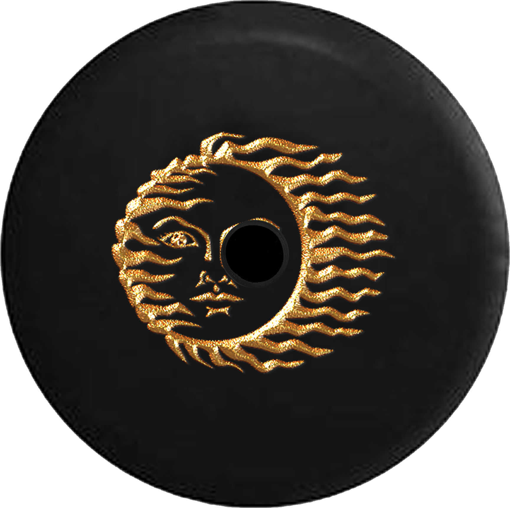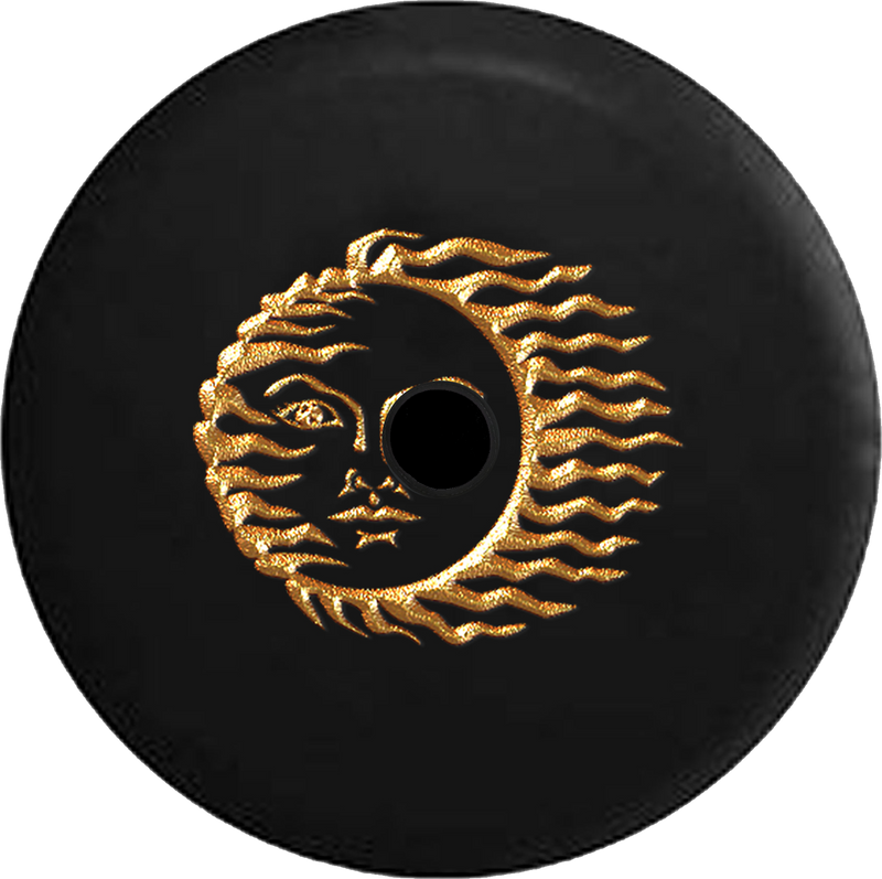 Jeep Wrangler JL Backup Camera Golden Shimmer Sun in the Wind RV Camper Spare Tire Cover-BLACK-