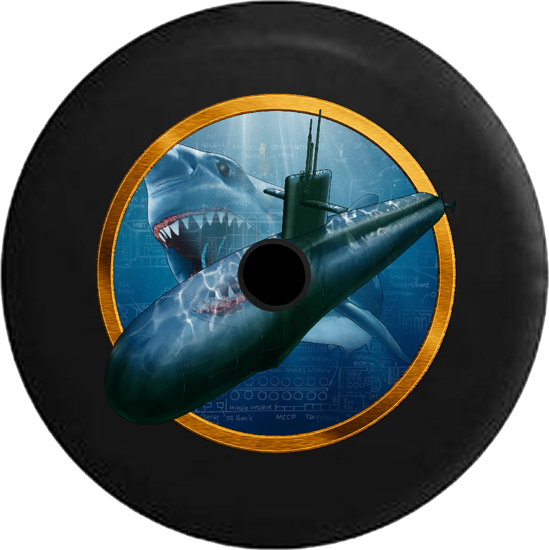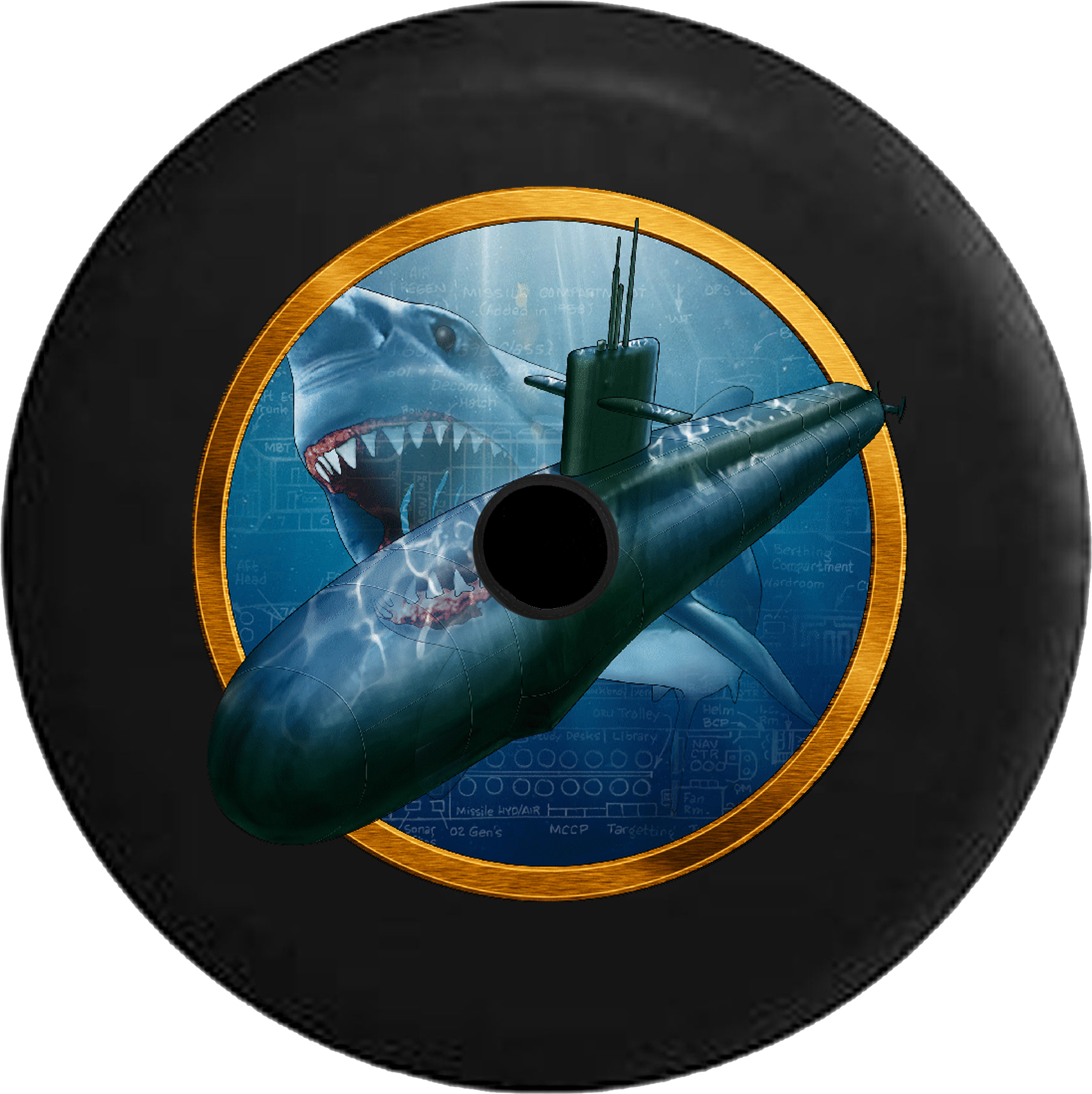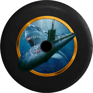 Jeep Wrangler JL Backup Camera Great White Shark and Ocean Submarine US Navy Military RV Camper Spare Tire Cover-BLACK-