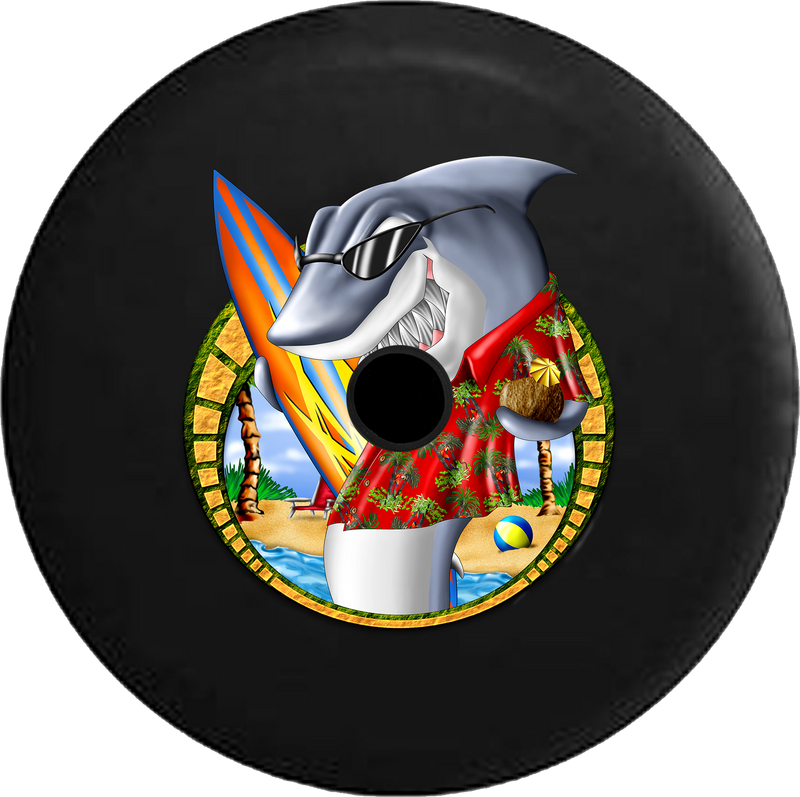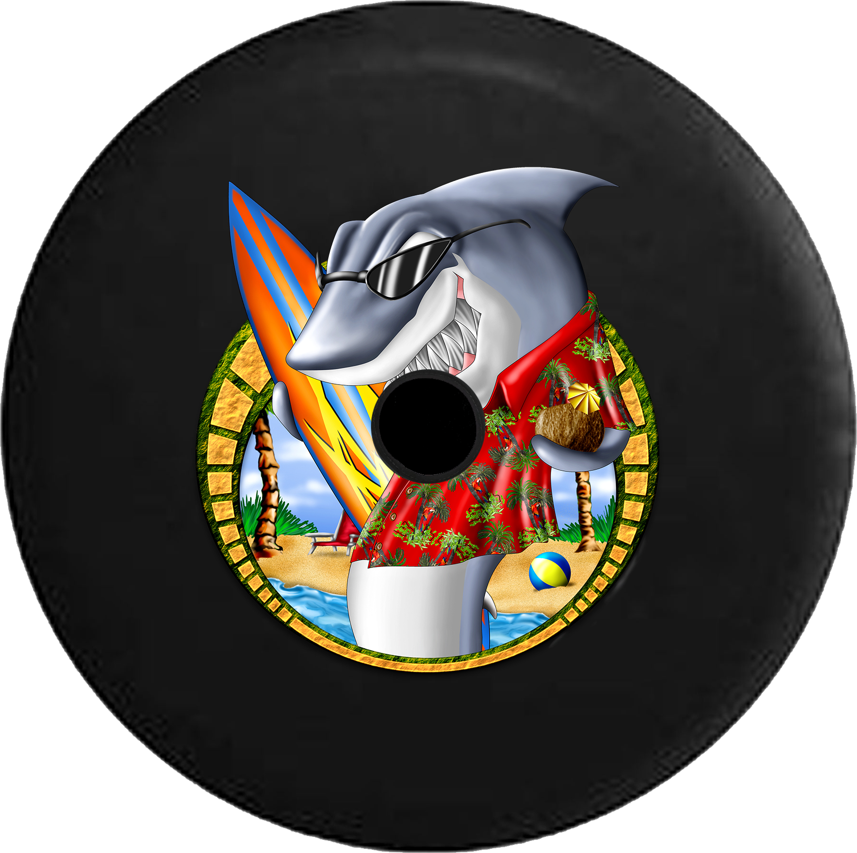 Jeep Wrangler JL Backup Camera Great White Shark Surfing on Vacation at the Island Beach RV Camper Spare Tire Cover-BLACK-