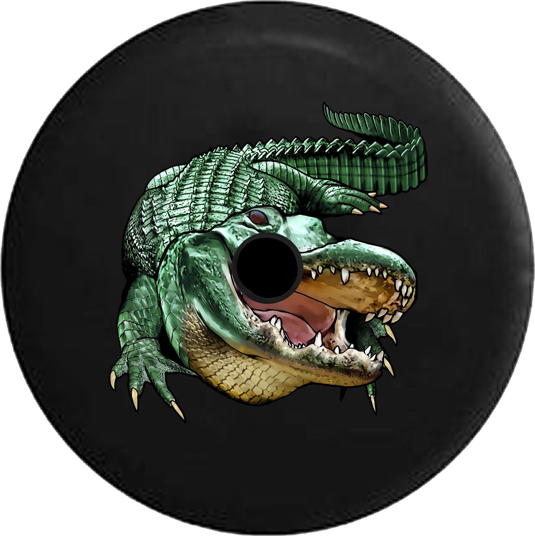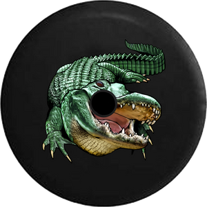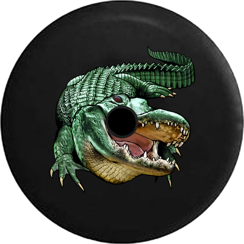 Jeep Wrangler JL Backup Camera Green Alligator Crocodile Swamp Life RV Camper Spare Tire Cover-BLACK-