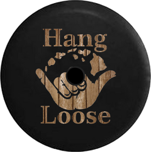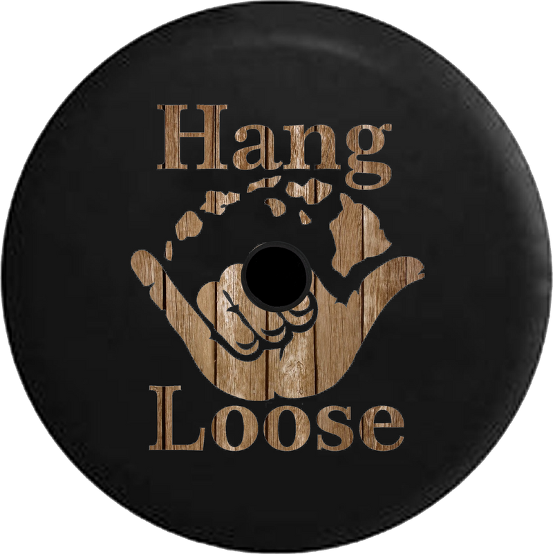 Jeep Wrangler JL Backup Camera Hang Loose Hawaiian Islands Wood Barn Boards Spare Tire Cover-BLACK-
