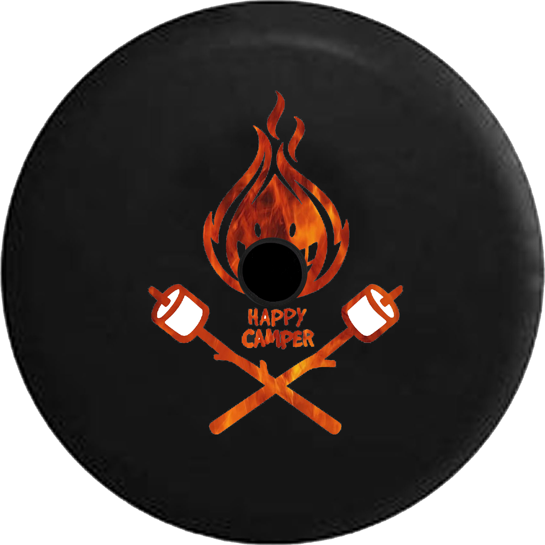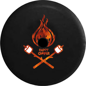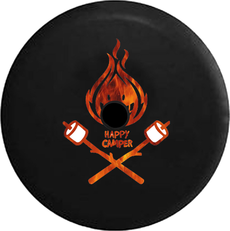 Jeep Wrangler JL Backup Camera Happy Camper Camp Fire Marshmallows Tie dye RV Camper Spare Tire Cover-BLACK-