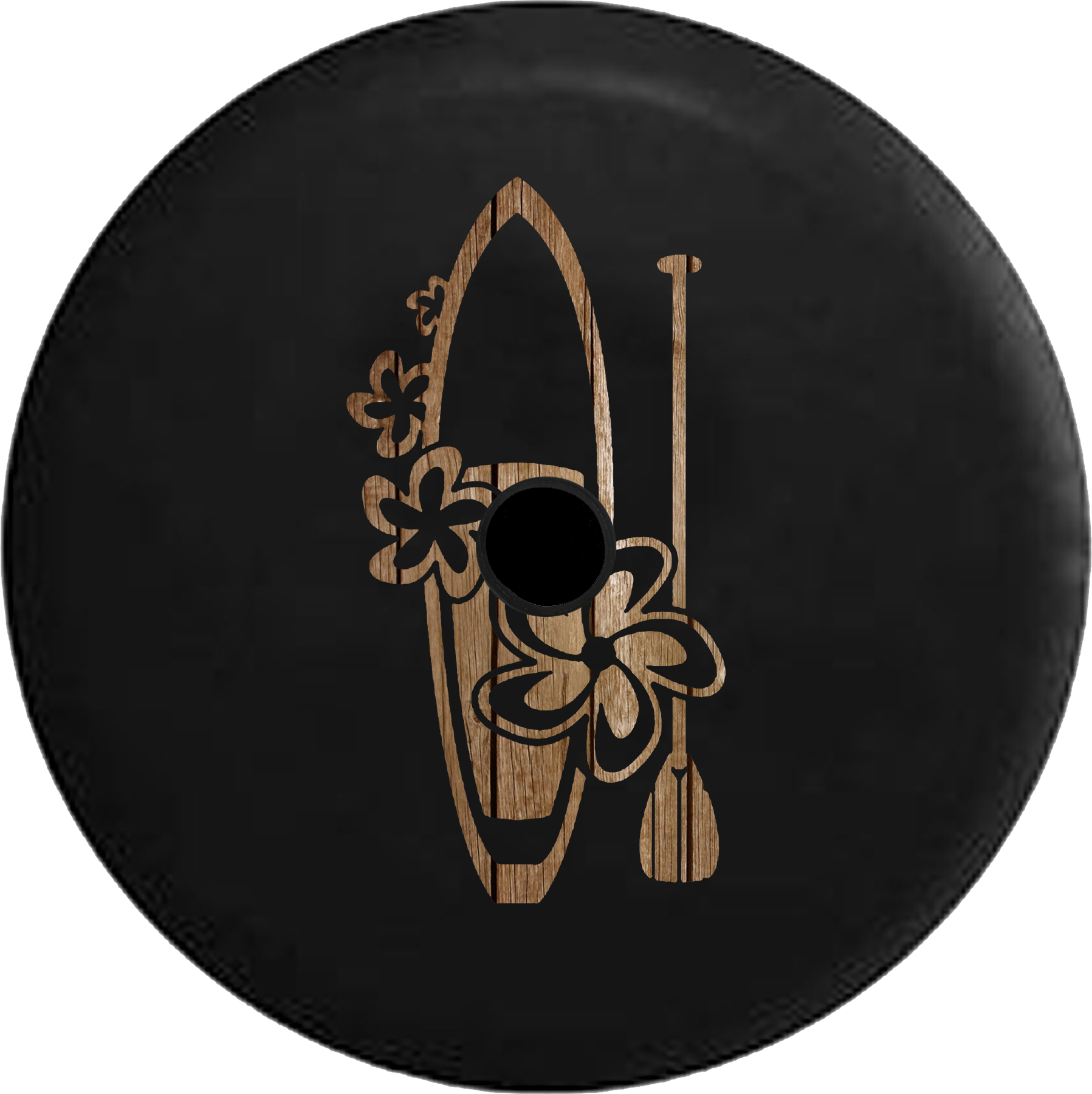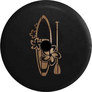 Jeep Wrangler JL Backup Camera Hawaiian Island Surfboard Wood Board Distressed Beach Spare Tire Cover-BLACK-