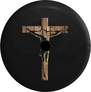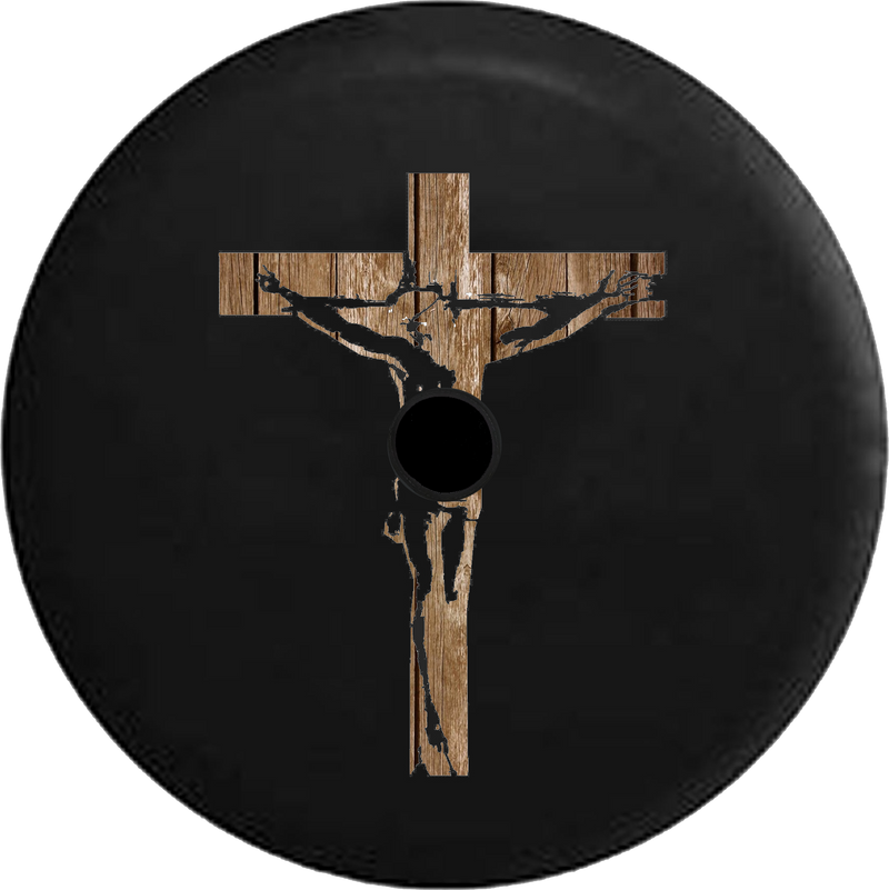Jeep Wrangler JL Backup Camera Jesus on Cross Holy Spirit Smoke RV Camper Spare Tire Cover-BLACK-
