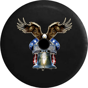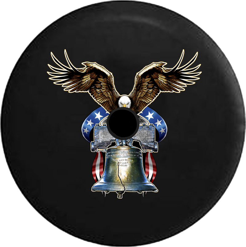 Jeep Wrangler JL Backup Camera Liberty Bell in the Talons of Soaring American Eagle RV Camper Spare Tire Cover-BLACK-