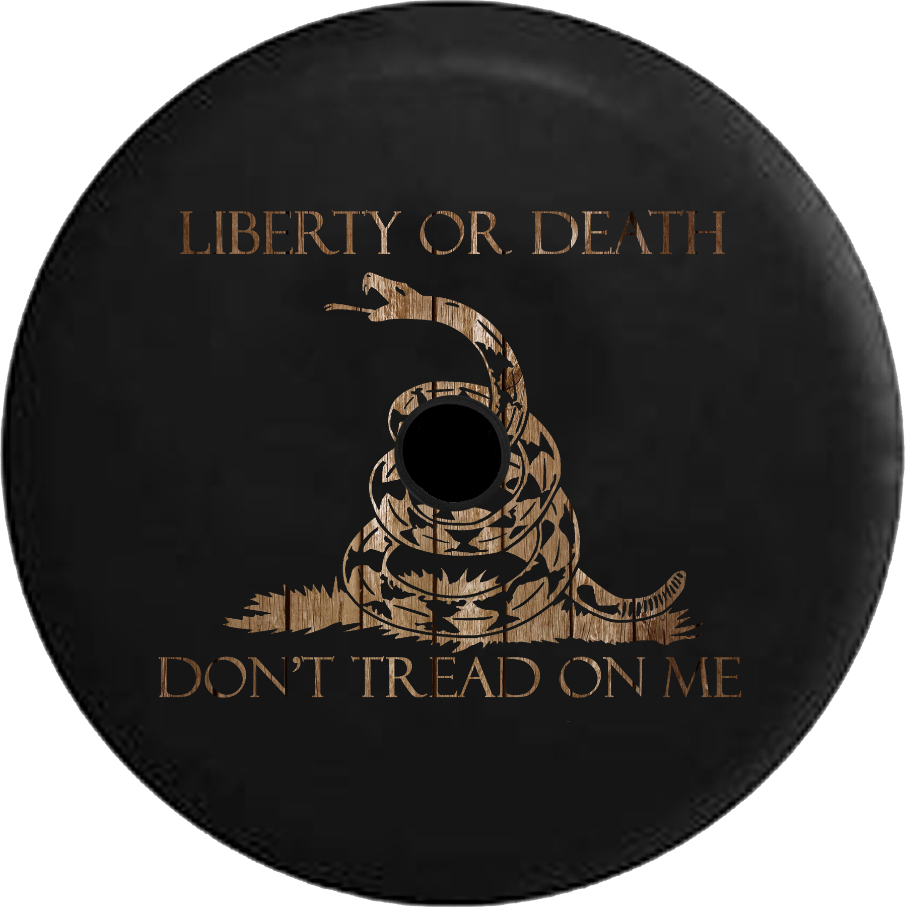 Jeep Wrangler JL Backup Camera Liberty or Death Don't Tread on Me Snake Barn Wood Spare Tire Cover-BLACK-