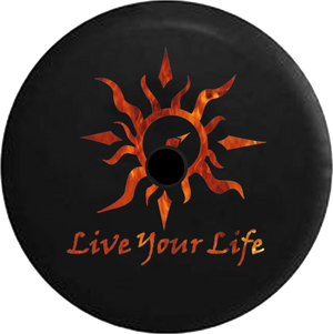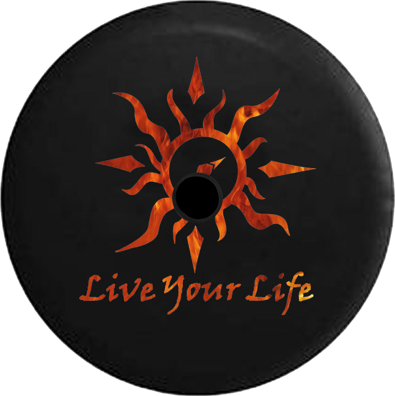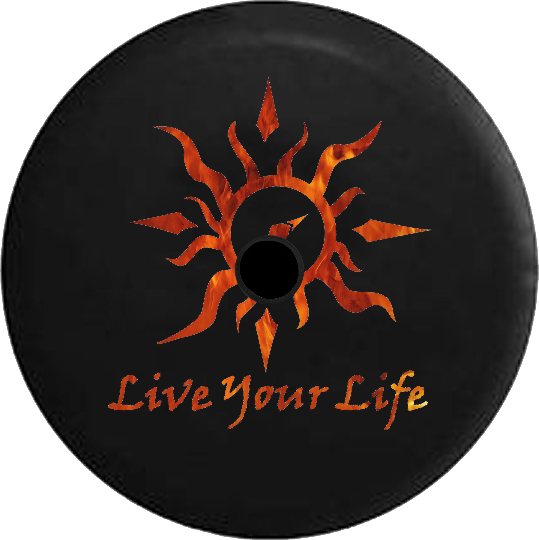 Jeep Wrangler JL Backup Camera Live Your Life Tribal Sun Compass Flames Fire Spare Tire Cover-BLACK-