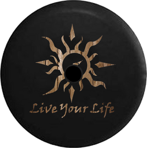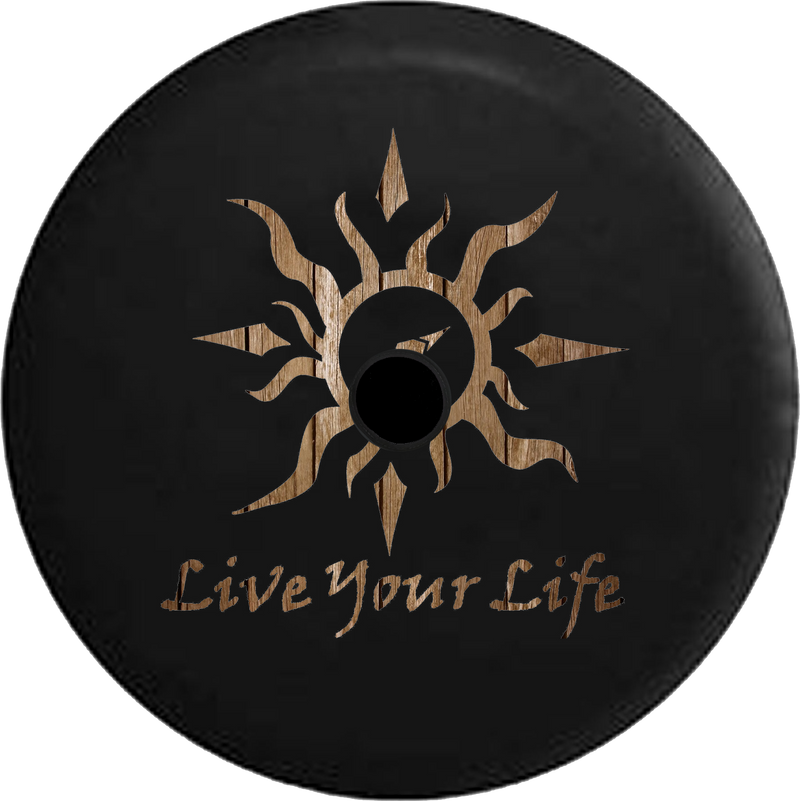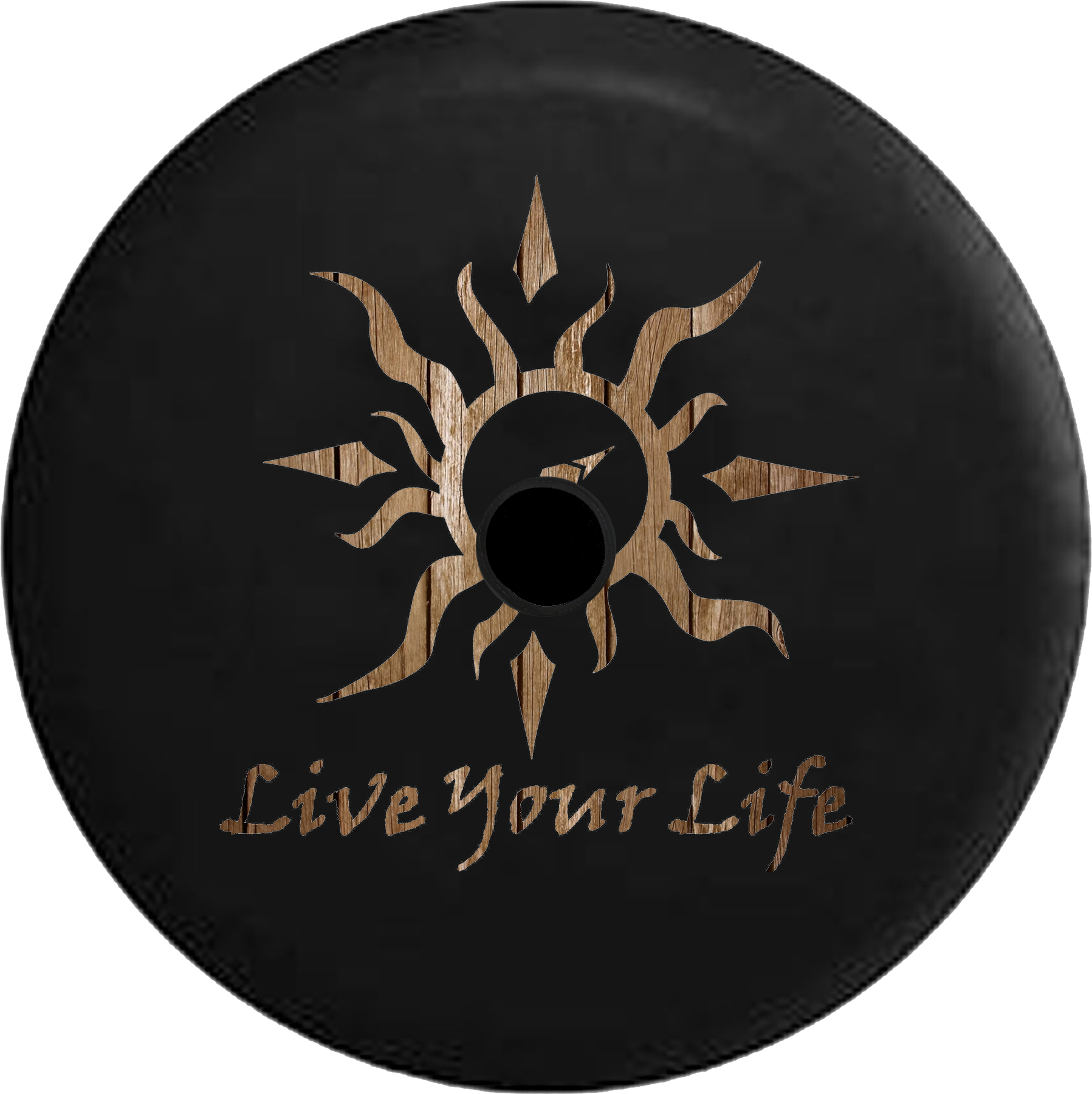 Jeep Wrangler JL Backup Camera Live Your Life Tribal Sun Compass Distressed Wood Spare Tire Cover-BLACK-