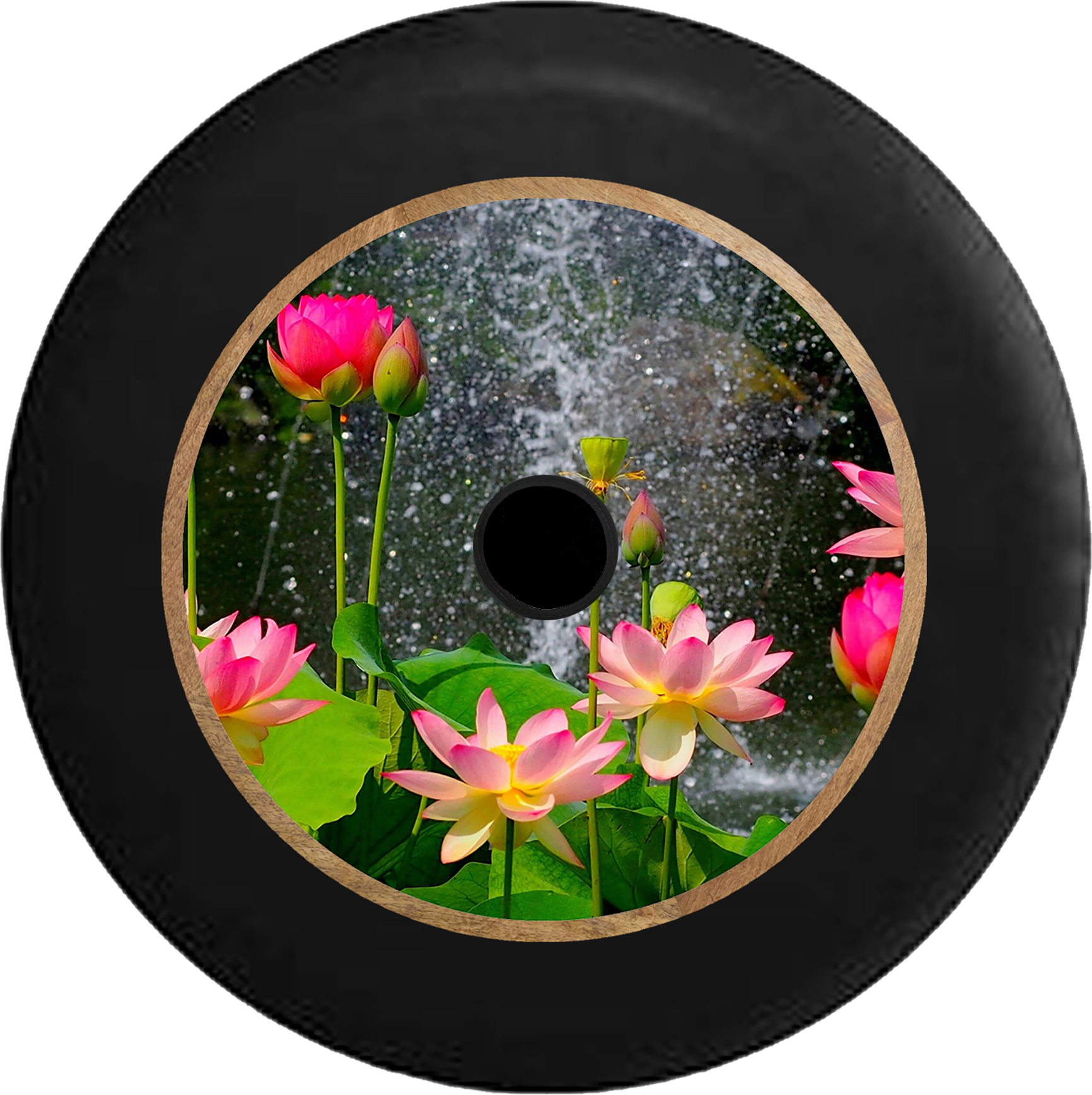 Jeep Wrangler JL Backup Camera Lotus Blossom Waterfall Rain Flowers Jeep Spare Tire Cover BLACK- - R327