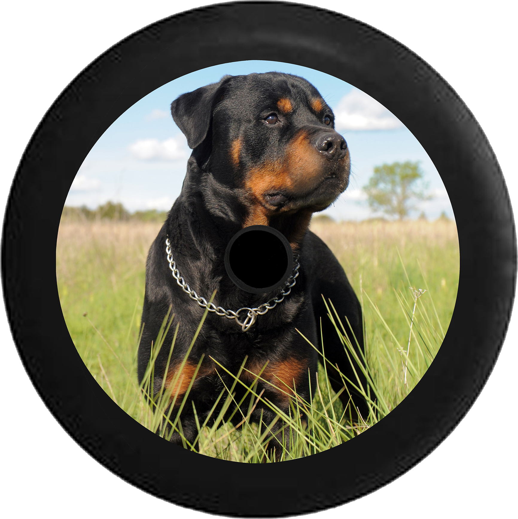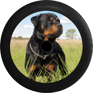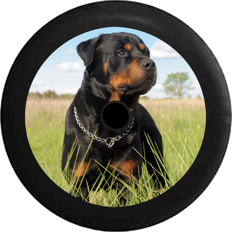 Jeep Wrangler JL Backup Camera Loyal Rottweiler in a Field Black 'n Tan Jeep Camper Spare Tire Cover BLACK- - R101